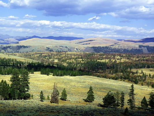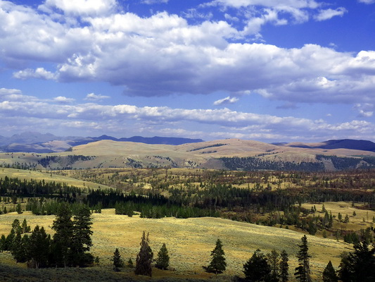 Da wir uns bei den Mammoth Hot Springs gerne so lange aufgehalten haben, ist es aber schon fast Mittag. Sonnenschein, heißt auch Hitze pur.