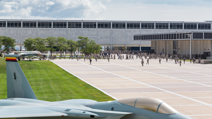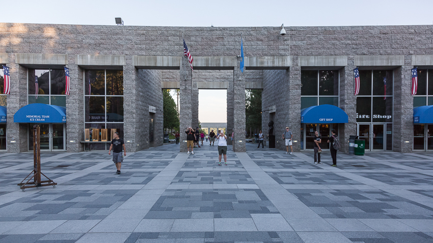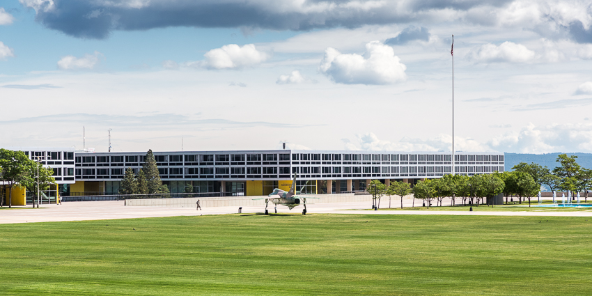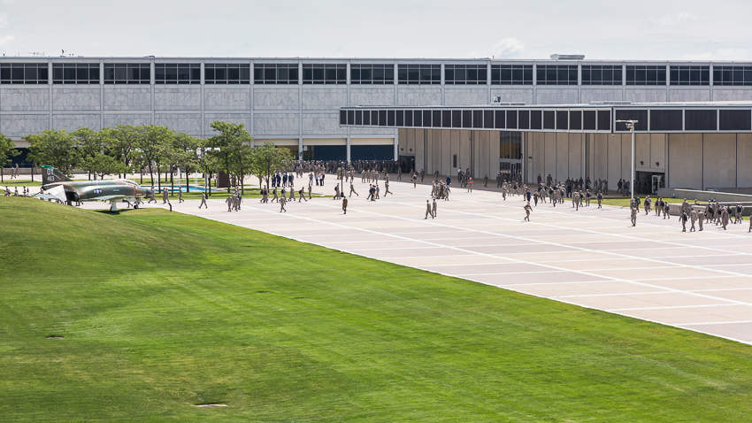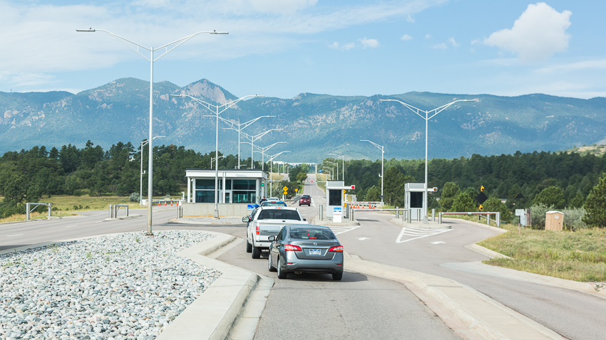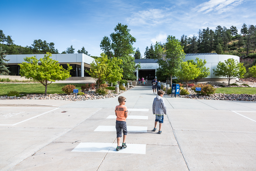 Gegen kurz vor 10.00 kamen wir dann an der ca. 30 Meilen entfernten „US Air Force Academy“ an. Als erstes wurden wir von einem sehr freundlichen Security ausgefragt, er wollte unsere Pässe sehen und nachdem wir ihm erzählten das auch 2 Kinder mit „an Board“ seien, fragte er wieder sehr freundlich nach, ob er kurz ins Wohnmobil kommen könnte. Nach etwa 2 Minuten war die Prozedur vorbei und er verabschiedete sich mit einem lächelnden „Tschüss“.