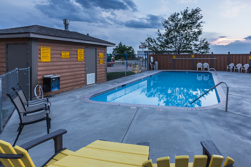 Um kurz vor 19.00 kamen wir dort an, wie befürchtet war dieser Campground aber bei weitem nicht so schön wie der vorherige in Fort Collins. Pech gehabt und selber schuld. Wir stöpselten an - heute gab es nur Strom und Wasser - und spielten dann eine Runde Minigolf. Danach wurde kurz der Pool inspiziert, aber da es leider keinen Whirlpool gab hatte sich das Thema für heute erledigt. Wir waren mittlerweile schon wieder auf fast 2.000 Höhenmetern angekommen und es war relativ frisch geworden - der leichte Wind sorgte außerdem für einen gewissen „Wind Chile Factor“.
