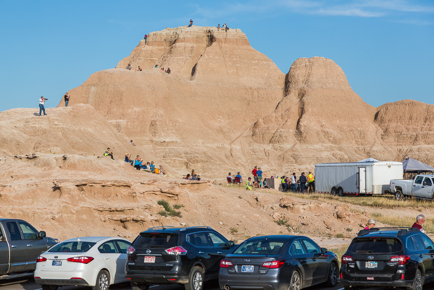 Kurz vor 21.00 war das Spektakel (zumindest für alle Amerikaner) dann vorbei. Die Menschen strömten in den Gift-Shop oder direkt zu ihren Autos. Wir hingegen aßen noch eine Kleinigkeit im Wohnmobil, verstauten Tom und Paul dann hinten im großen Elternbett und machten uns gegen kurz nach halb Zehn auf den langen Weg ‘gen Westen. Wir wollten noch einen Teil der Strecke bis zum "Yellowstone Nationalpark" fahren. Tom und Paul schliefen relativ schnell ein und so konnten Birgit und ich noch ein paar Meilen „runterschrubben“. Ich weiß, da werden jetzt viel laut aufschreien, aber wir sind da halt etwas  - ich nenne es mal - „radikaler“. Um kurz vor 02.30 kamen wir dann an einer „Rest Area“ in "Sheridan" an, dann hatten auch wir keine große Lust mehr. Ach ja - unterwegs sahen wir in Summe 16 Rehe, 5 Hasen und 2 große Greifvögel die von der Straße flatterten - das waren in Summe mehr Tiere als wir Autos gesehen hatten.