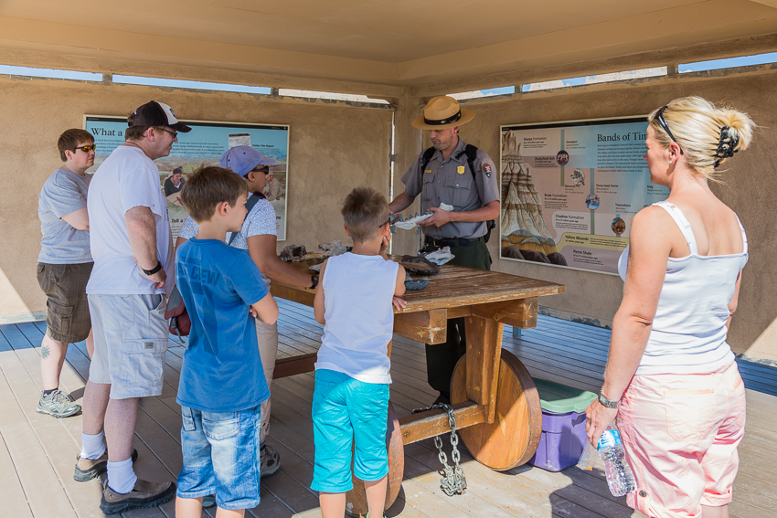 Punkt für Punkt klapperten wir die View Points laut der National Park Map ab. Nachdem doch das eine oder andere Highlight immer wieder ähnlich aussah, durften Tom und Paul auch das eine oder andere Mal im Wohnmobil warten. Gegen Mittag war es dann zusätzlich auch schön kuschelig warmgeworden, die vorhergesagten 94° Fahrenheit waren laut WoMo- Thermometer erreicht.