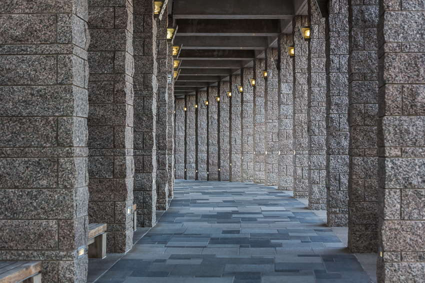 In der Kirche finden sich insgesamt 4 Glaubensrichtungen wieder: protestantisch, jüdisch, katholisch und buddhistisch. Nachdem wir uns im protestantischen Teil satt gesehen hatten, gingen wir ein Stockwerk tiefer. Hier konnte man nur den katholischen Teil besichtigen. Birgit war mit den Kindern bereits vorausgegangen, als ich dann 2 Minuten später nachkam wurde Birgit bereits von einem sehr sympathischen älteren Herrn im Detail über die Entstehung und Geschichte der Kirche aufgeklärt. Ich hab ja zugegebenermaßen mit der Kirche nix am Hut, tat aber so gut es ging interessiert und stellte auch die eine oder andere Frage. Wie gesagt, der gute Mann war überaus sympathisch. Als wir dann die Kirche wieder verlassen hatten, hörten wir draußen militärisches Trommeln. Wir liefen wieder zur Aussichtsplattform und konnten beobachten, wie in einiger Entfernung die Kadetten in straffer Formation zum Mittagslunch einliefen. Auch aus der Entfernung ein eindrucksvolles Schauspiel. Nachdem wohl ein Großteil der 4.000 Kadetten dann in der „Kantine“ saß, gingen Birgit, Tom und Paul zurück zum Wohnmobil. Ich erkundete noch einmal das Gelände rund um die Kirche und machte ein paar Bildchen.