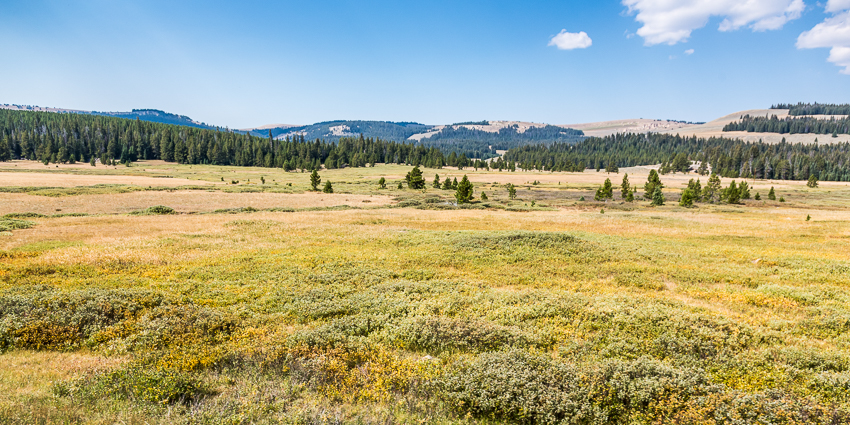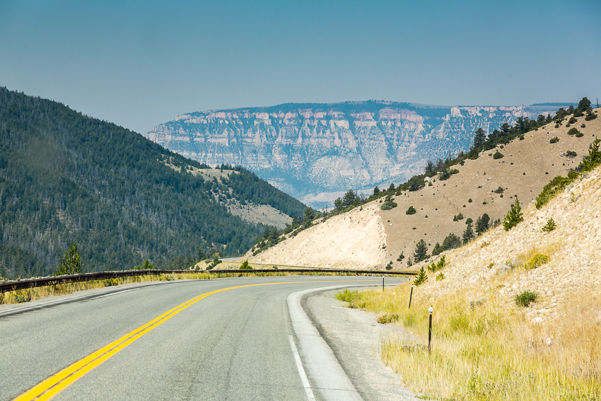 Trotz des Generatorenlärms der benachbarten LKW’s sowie zweier anderer RV’s, schliefen wir bis kurz nach 09.00. Nach einer kleinen Aufräumaktion sowie einem Frühstück ging unsere Tour um 10.00 weiter. Das Navi sagte bis Cody rund 2 Stunden 40 Minuten voraus - die Fahrerei für Tom und Paul sollte sich heute also in Grenzen halten. Durch die landschaftlich sehr schöne Strecke fuhren wir durch den "Bighorn National Forest" weiter Richtung Cody. Dort tankten wir dann noch einmal voll, wer weiß wieviele Möglichkeiten es im Yellowstone Nationalpark geben würde und was der Spaß dann kostete.
