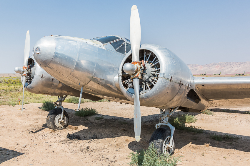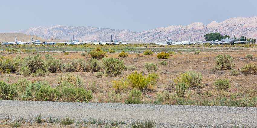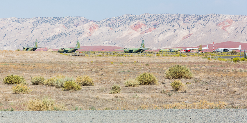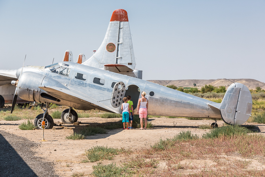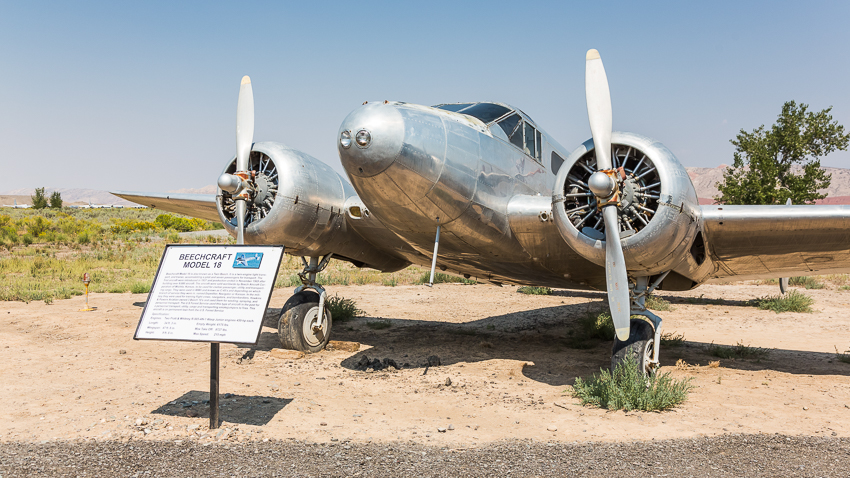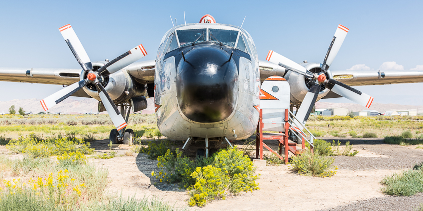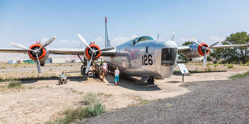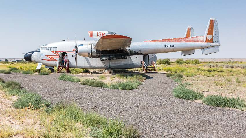 Nach knapp 1 1/2 Stunden machten wir an den "Shell Falls" im Bighorn National Forest eine erste Pause. Von einem kleinen Rundweg aus hatte man von mehreren Aussichtspunkten aus einen schönen Blick auf die Wassermassen. Nach 25 Minuten ging es dann wieder weiter. Als wir gerade in Greybull den Ort  wieder verließen, fielen mir im letzten Moment ein paar alte Flugzeuge unweit des Straßenrandes auf. Es war das kleine "Museum of Flight and Serial Firefighting". Für 2$/ Person oder wie bei uns - für 5$/ Familie konnte man sich 5 betagte Maschinen anschauen. Die Dame im Office warnte uns noch vor den Klapperschlangen die es dort draußen wohl zu Haufe gab und wünschte uns dann viel Spaß. Eine halbe Stunde lange schlichen wir um die Flugzeuge, eines konnte man sogar von innen besichtigen.