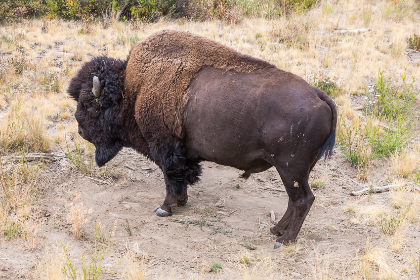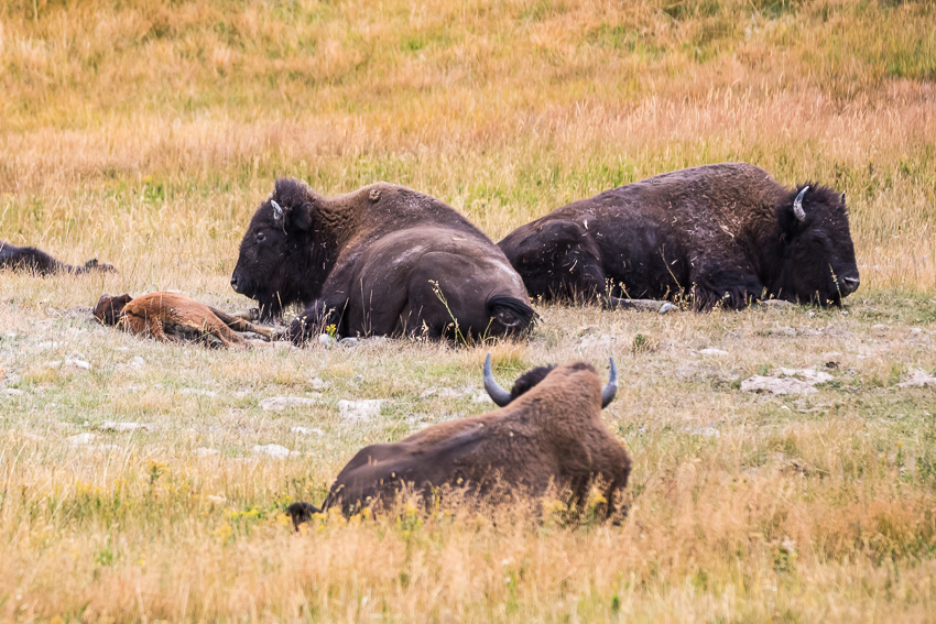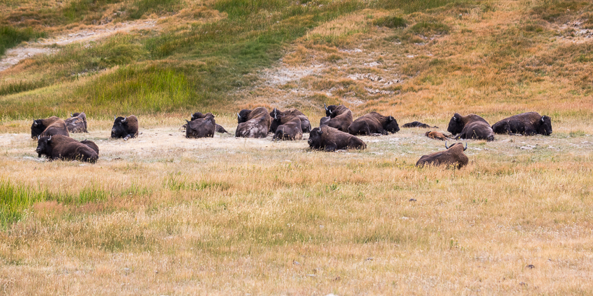 Im Laufe des Tages sahen wir dann noch eine große Bisonherde, die sich langsam in Richtung Straße bewegte. Nachdem wir gewendet hatten, standen sie dann zum Teil schon auf der Straße - ohne Anzeichen von Angst oder Hektik. Einfach faszinierend.