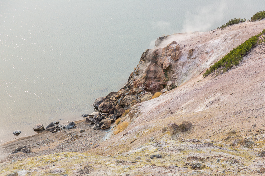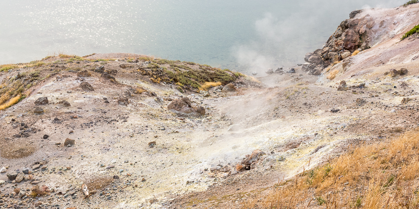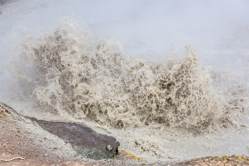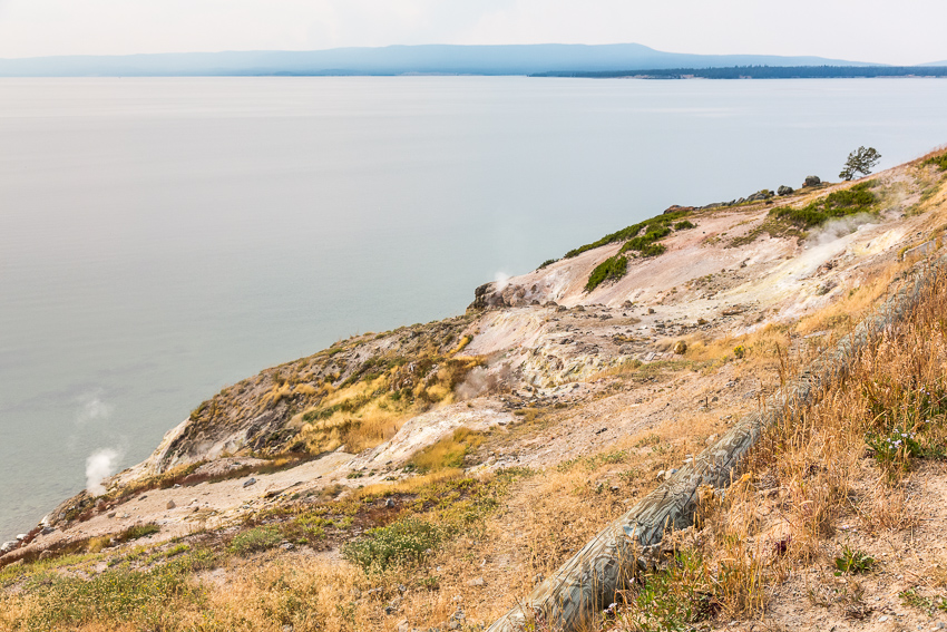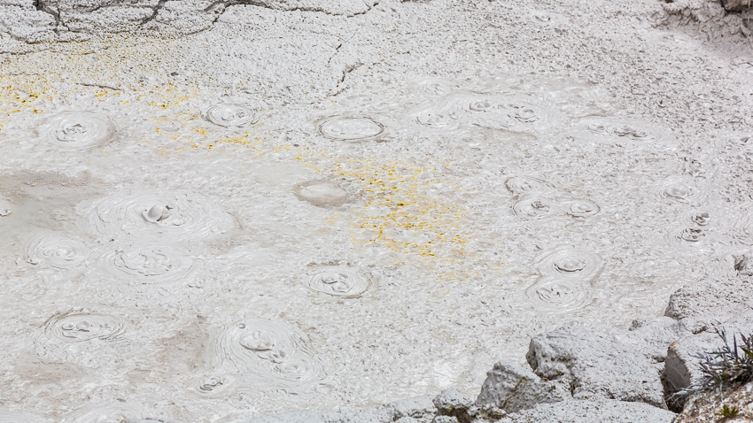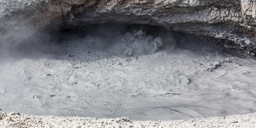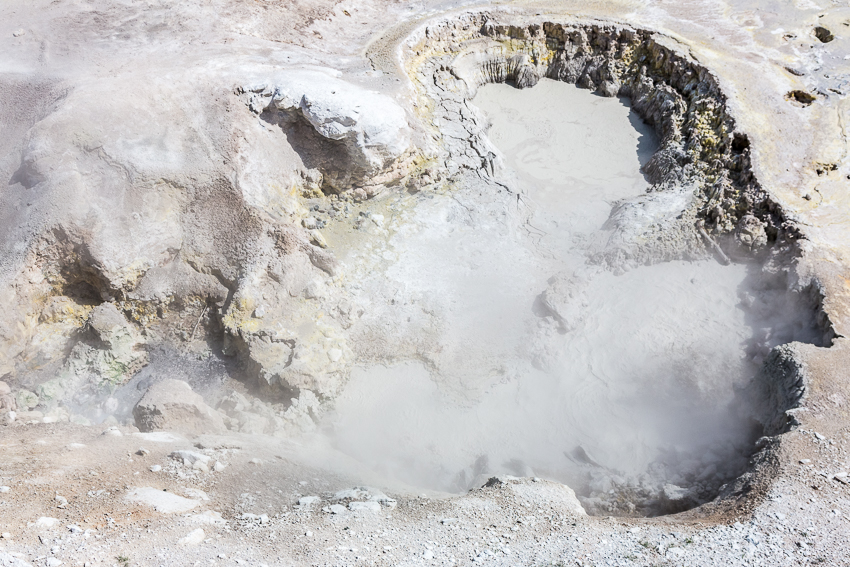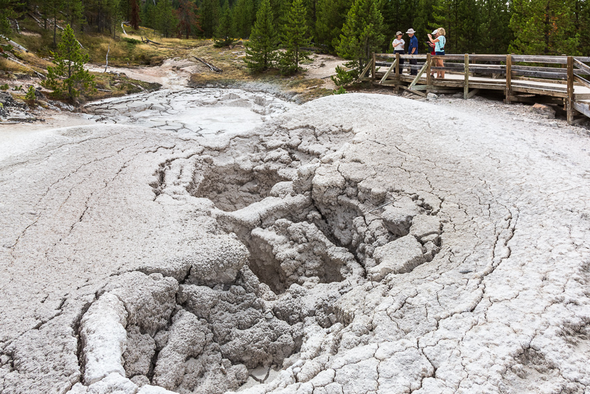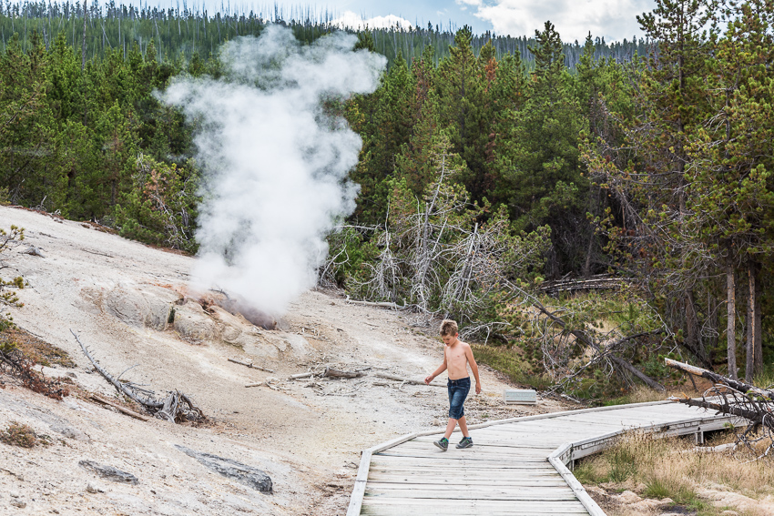 Der erste Sightseeing Point des heutigen Tages war dann der Mud Volcano. Wir liefen den ca. 800m langen Trail, vorbei an den nach faulen Eiern riechenden Schlammbädern. Tom hielt erstaunlicherweise recht gut durch, dass letzte Mal hatte er sich aufgrund des leckeren Schwefel- geruchs fast übergeben. Ein wenig Gemotze der Jungs aufgrund der Lauferei war natürlich dabei, aber da mussten sie jetzt durch. Das hatte ich ihnen auch schon vor unserer Ankunft im Yellowstone angedroht, das die nächsten Tage „etwas“ sportlicher werden würden.