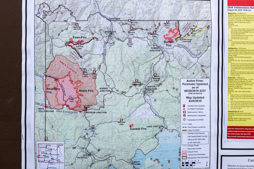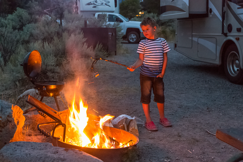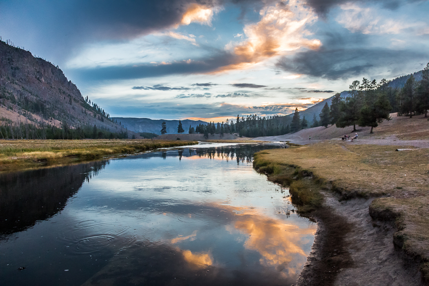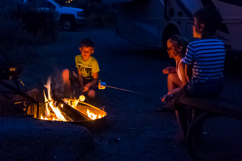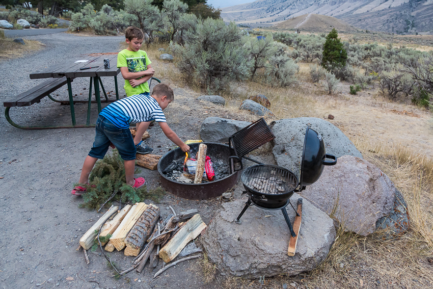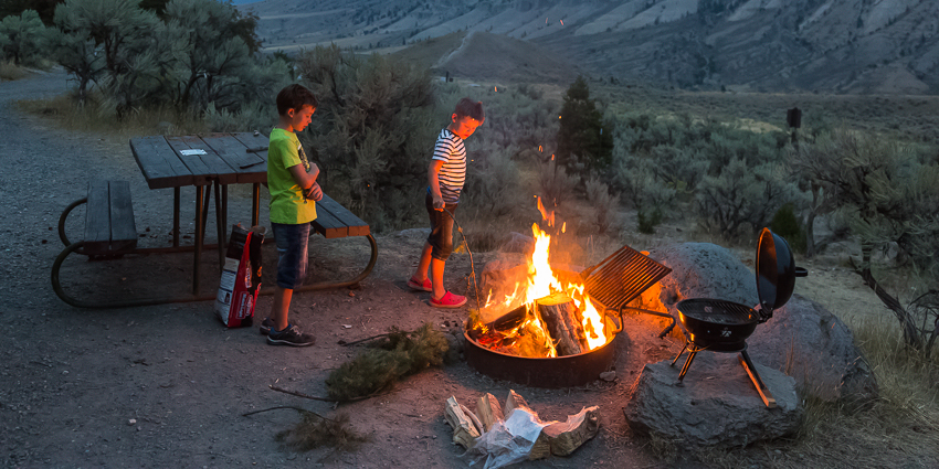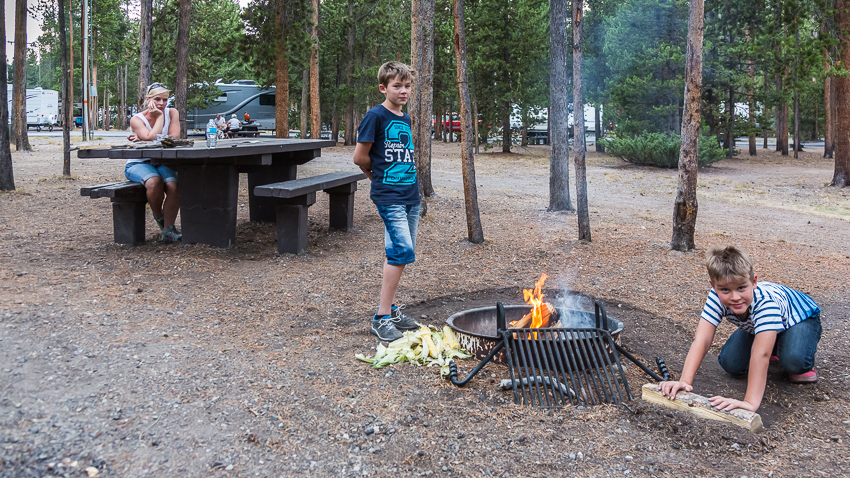 Zum Abschluss des Tages grillten wir wieder, drehten zum Verdauen eine kleine Runde durch den Campground und machten ein letztes Lagerfeuer im Yellowstone Nationalpark. Laut Rangerin im Registration Office des Madison Campground’s war heute die letzte Chance ein Lagerfeuer zu entzünden, bevor morgen Mittag aufgrund der Waldbrandgefahr ein generelles Verbot für offene Feuer eintreten würde. Kurz vor 21.00 ging es dann für Tom und Paul in die Falle, morgen würde wieder ein langer und anstrengender Tag werden. Ich machte mich dann noch mit der Taschenlampe auf den Weg zum „Ranger Programm“ im Amphitheater des Campgrounds. Um Punkt 21.00 begann der super interessante Diavortrag über die geologische Geschichte der Erde im Allgemeinen und dem Yellowstone im speziellen. Ich blieb aber nur 20 Minuten da ich den Jungs noch nicht gute Nacht gesagt hatte und auch nicht so lange bleiben wollte.