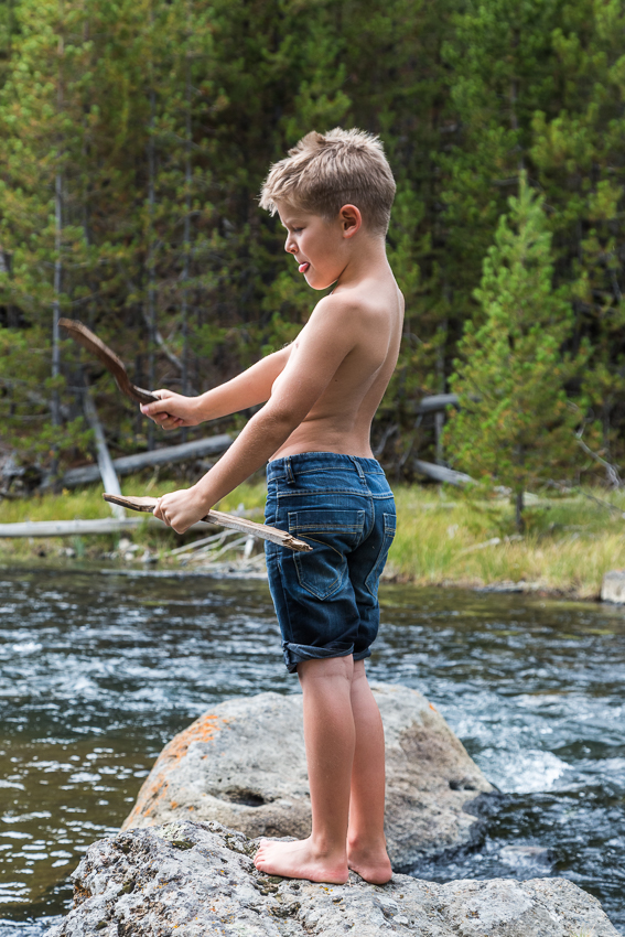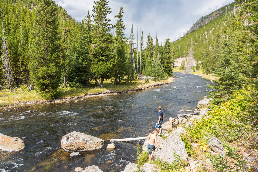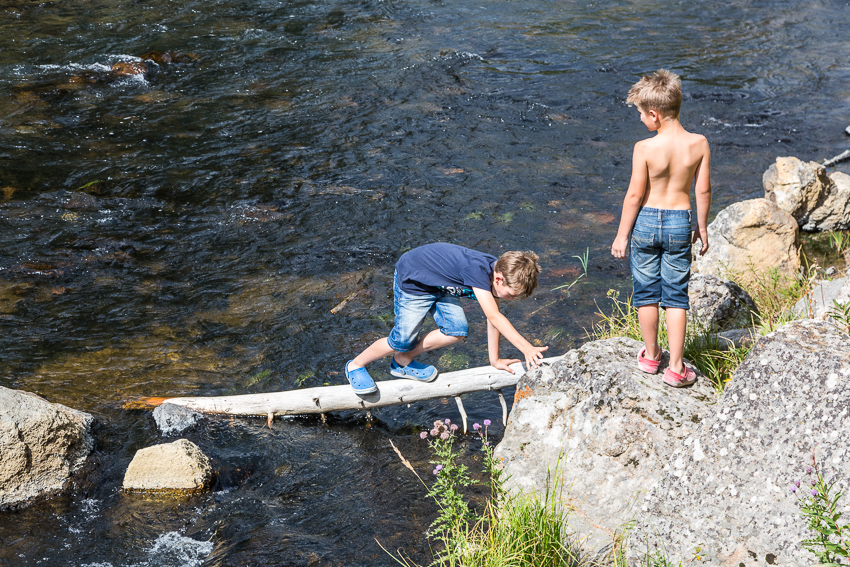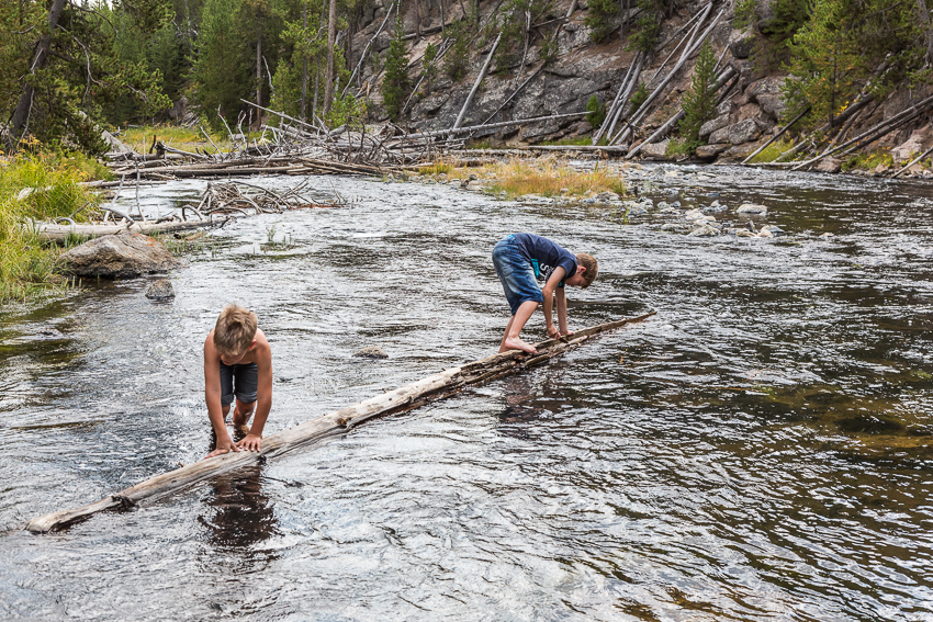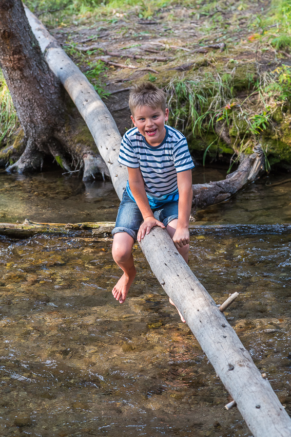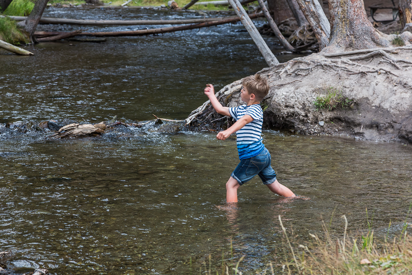 Am Gibbon River machten wir dann an irgendeiner Haltebucht Stop und liefen die Böschung zum Fluss runter. Der war an der Stelle maximal knietief und so konnten wir eine ganze Zeit lang durch die leichte Strömung kraxeln.