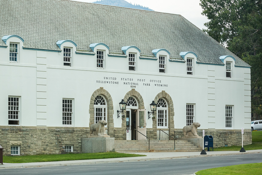 Das Handy weckte uns um 07.45. Es konnte ja nicht sein, dass wir den Nationalpark schlechthin verschlafen. Tom und Paul waren wieder mal fast nicht wach zu bekommen, aber es half ja alles nix. Nach dem Frühstück und dem Abstöpseln machten wir uns auf in Richtung Norden. Seltsamerweise war noch recht wenig los. Langsam dämmerte mir auch warum - wir waren seit South Dakota in der Zeit wieder um eine Stunde nach hinten gesprungen. Der Wecker bimmelte also nicht um 07.45 sondern bereits um 06.45 !!! Egal, so hatten wir mehr vom Tag. In der Fishing Bridge Post Office machten wir kurz Halt, um endlich die beiden Postkarten an Oma und Opa loszuwerden.