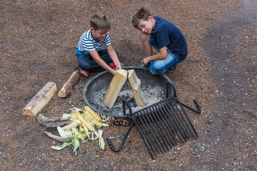 Dann wurde der Grill angeschmissen und es gab unter anderem mal wieder lecker Maiskolben. Immer wieder starrten wir in den 10 Meter entfernten, dichten Wald und warteten auf irgendein Tier :-). Kam aber leider nix mehr. Zum Abschluss des Tages gab es dann noch süßpappig gegrillte Marshmellows - die Dinger stopfen vielleicht, Waahnsinn !!!