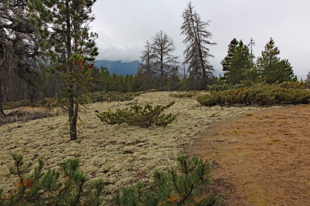 Unsere Fahrt führt uns zunächst bis Little Fort, dort zweigen wir nach rechts auf die 24 ab. Jetzt wird es richtig gebirgig, die Straße führt ziemlich steil hinauf. Wir wundern uns, daß irgendwer einen großen schwarzen Müllsack am Rand eines Parkplatzes abgestellt hat. Als wir näherkommen, setzt der sich allerdings in Bewegung – es war ein Bär, der uns den Rücken zugewandt hatte und nun beim Bemerken des Autos die Flucht ergreift. Unsere erste (und leider auch letzte – daher also einzige