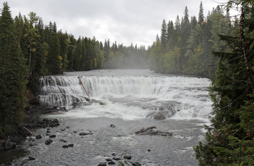 Auf dem Weg Richtung Clearwater haken wir noch einen fehlenden Wasserfall ab, nämlich die Spahats Falls. Man geht einen kurzen Weg zu einer Aussichtsplattform, wo man einen schönen Blick auf den Wasserfall hat, der sich tief in den Felsen eingeschnitten hat. Von dort gehen wir dann noch einen kurzen Weg durch den Wald von etwa 20 Minuten zu einem Aussichtspunkt auf das Clearwater Valley.