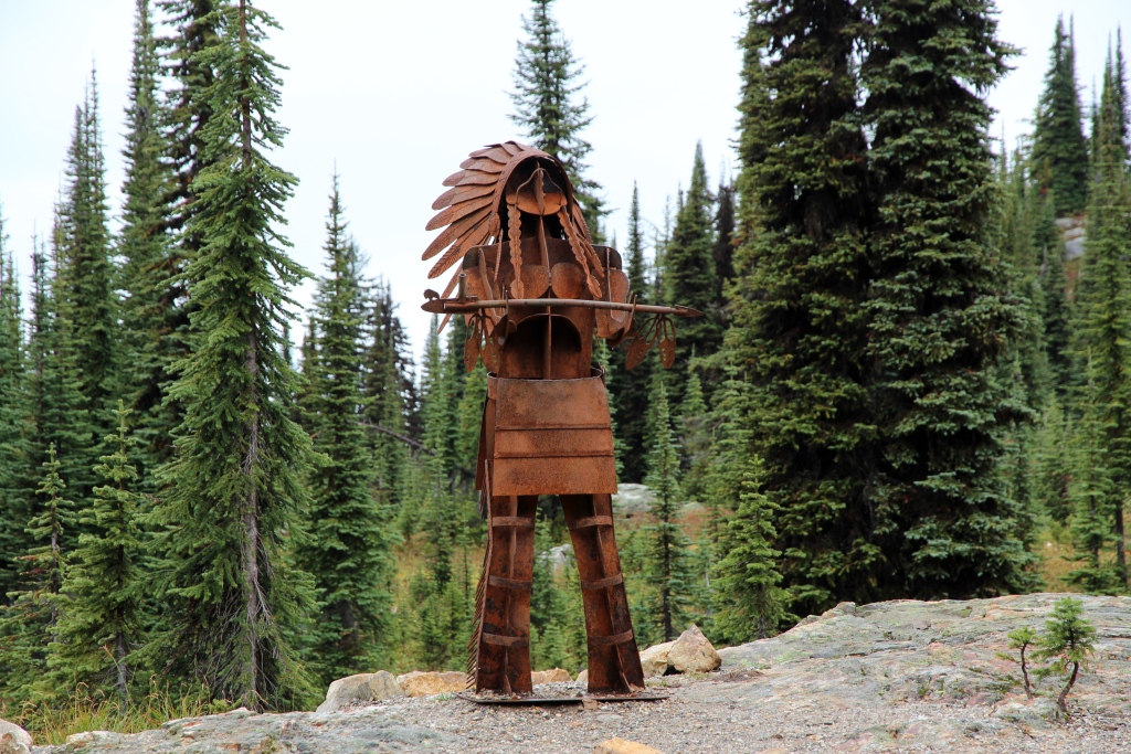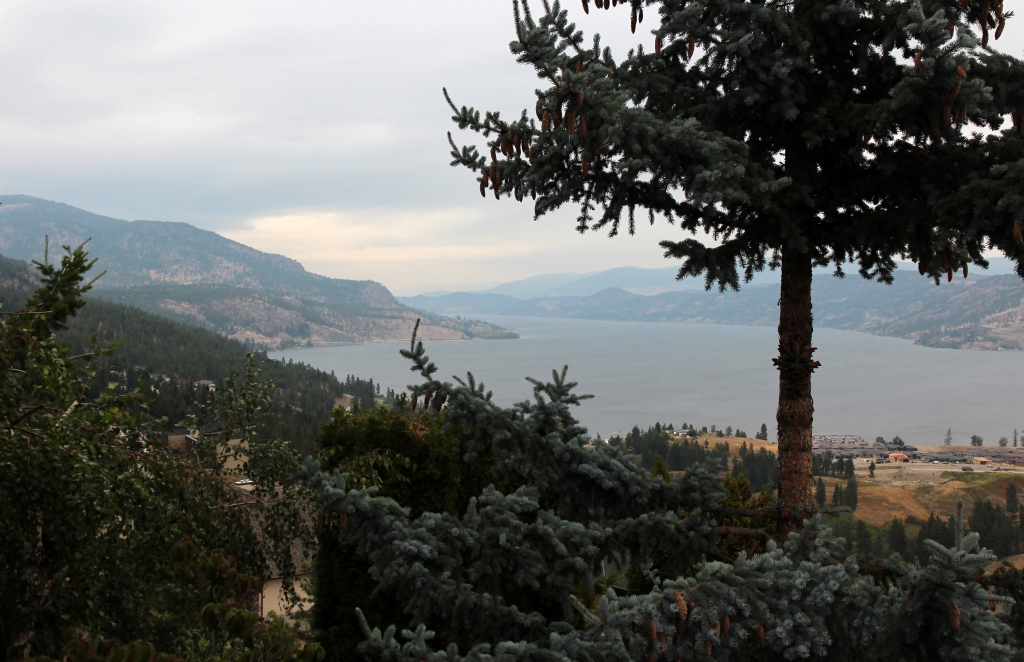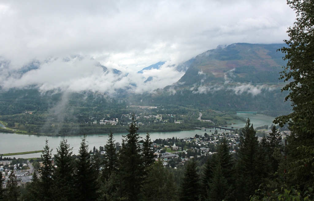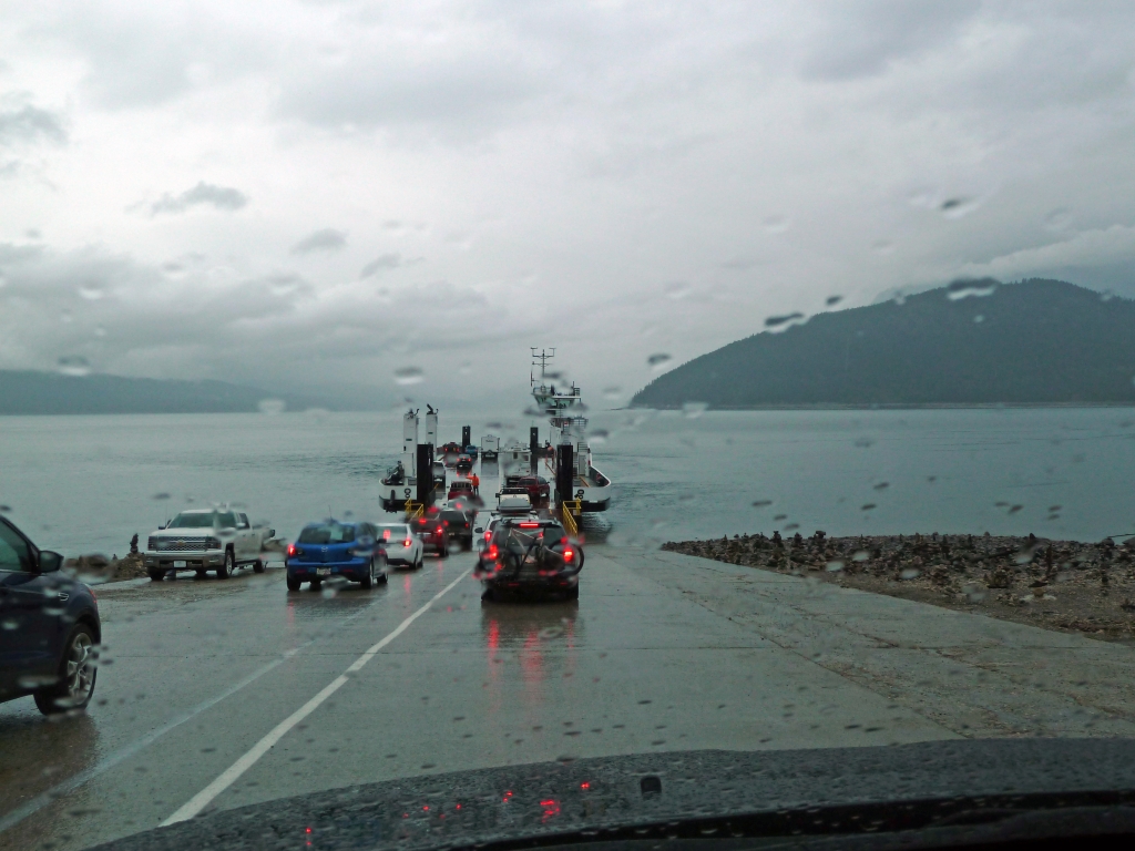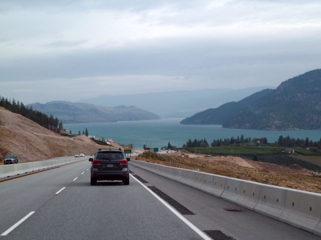 Nach nicht allzu langer Fahrt kommen wir zum Kootenay Valley Viewpoint, wo wir amerikanische Touristen treffen, die mit Zelt unterwegs sind und nach ihren Schilderungen ziemlich kalte Nächte verbracht haben. Die Sicht am Viewpoint ist leider ziemlich eingeschränkt. Es schließt sich eine schier endlose Fahrt an zunächst am Fluß entlang und durch Wald. Es ist zwar trocken, aber Berge sind total eingehüllt (falls denn welche da sind – nur manchmal kann man sie erahnen).