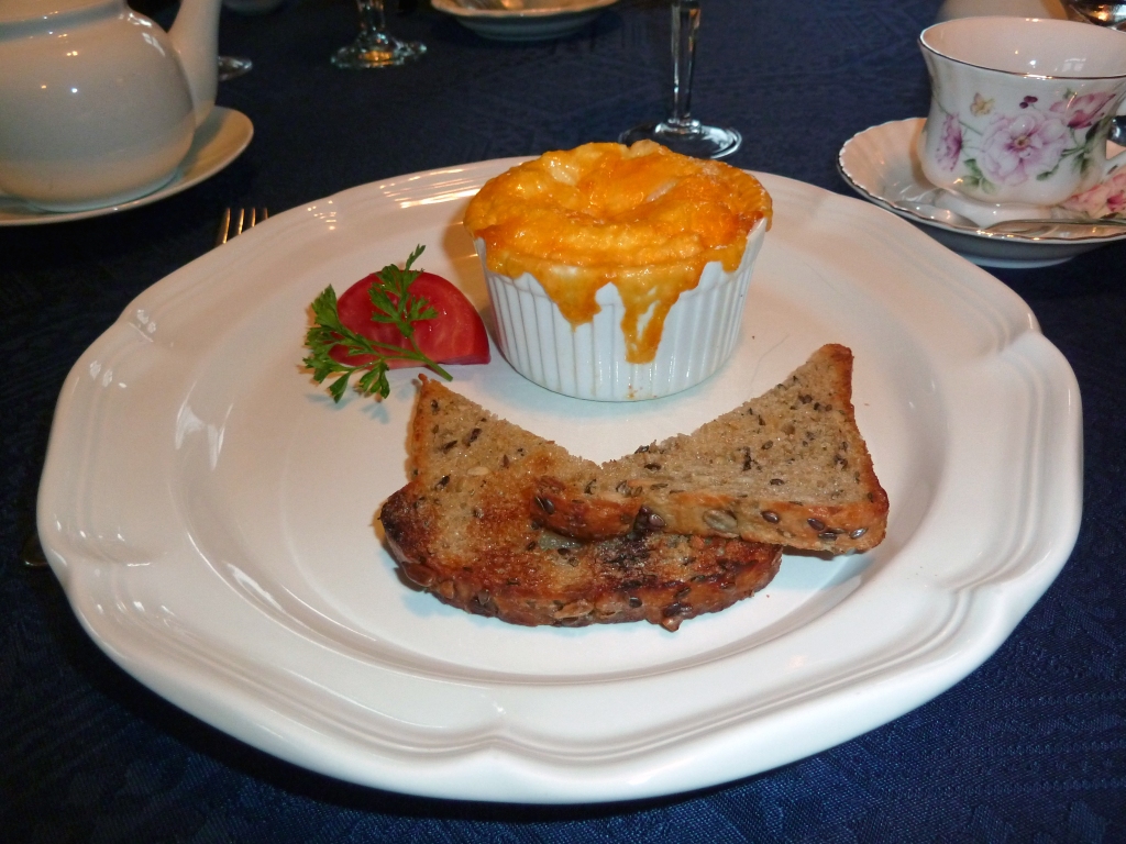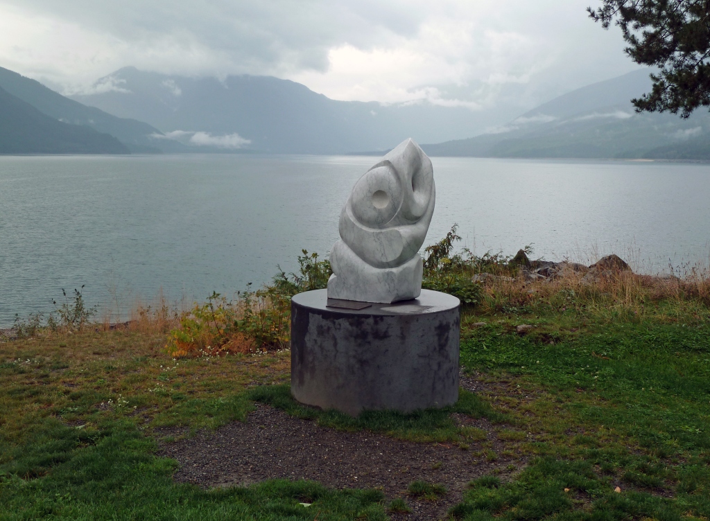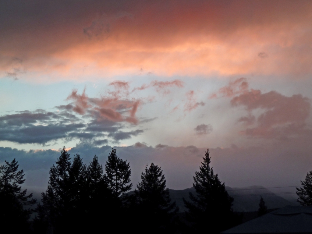 Durch Zufall entdecken wir bei der Weiterfahrt die Abzweigung zur Storm Mtn Lodge. Wir stellen das Auto am letzten erhältlichen Parkplatz ab und gehen in das urig hergerichtete Restaurant, wo wir nur fünf Minuten auf einen freien Tisch warten müssen. Das Essen übertrifft alle Erwartungen. Marianne ißt einen Sablefish auf Salat, ich einen Ziegenkäse ebenfalls auf Salat. Der Nachtisch am Nebentisch macht uns an – das müssen wir auch noch haben: je eine "Crisp", ein Soufflée mit Heidel-, Him- und Erdbeeren. Zum Trinken gibt es ein Grizzly Honey Wheat bzw. einen Cranberry/Pineapple-Saft mit Ginger Ale. Draußen vergnügen sich Kolibris an einem Futterplatz. Die hätte ich so weit im Norden nicht erwartet. Leider lassen sie sich nicht ganz leicht fotografieren.