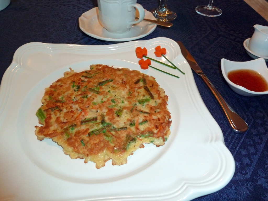 Anschließend gehen wir zu Fuß den Hang hinunter zum Restaurant. Die Reservierung hat sich als überflüssig erwiesen – es ist fast leer. Offenbar meiden die Gäste warum auch immer diesen Ort. Das Essen ist zwar nichts besonderes, aber auch nicht schlecht. Wir bestellen eine "sizzling trout" mit Reis (ein Wechsel zu Fritten hätte die Fähigkeiten des Restaurants offenbar überfordert; er wurde uns jedenfalls verweigert, obwohl es auch Gerichte mit Fries gab). Die Forelle kam brutzelnd ("sizzling") im Pfanderl und die Beilagen (Reis, Gemüse) auf einem eigenen Teller. Dazu gönnten wir uns je ein Moosehead, nachdem es nur Standardbiere gab. Während wir essen, kommt ein sintflutartiger Wolkenbruchartiger vom Himmel. Viele Wanderer kommen auf ihrem Rückweg völlig durchnäßt und triefend vorbei – gut daß wir nicht zu den Ink Pots weitergelaufen sind.