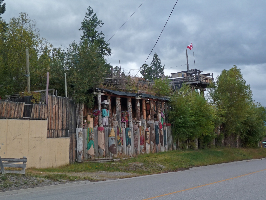 Zunächst fahren wir in den Ort zum kleinen Supermarkt, um – ziemlich teure – Lebensmittel zu kaufen. Außerdem erwerben wir ein Bärenspray. Anschließend geht es zur Tankstelle ein paar Meter weiter, wo Marianne sich noch einen Kaffee besorgt.