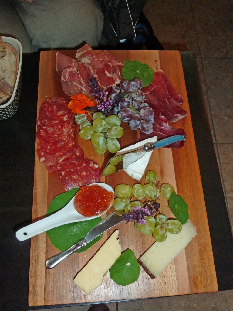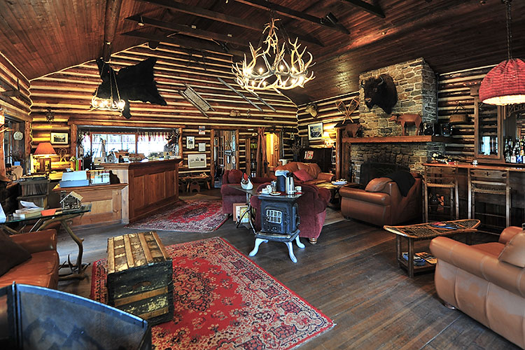 Bevor wir unseren Schlüssel holen haben wir dann noch einen Tisch im Restaurant reserviert, damit wir angesichts der Menschenmassen nicht verhungern müssen. Am Check-in Pavillon müssen wir noch ein wenig warten – der ist offenbar nach einem von Lust und Laune gesteuerten System für eine Weile geschlossen. Es dauert aber nicht lange und wir erhalten den Schlüssel zur Fireplace Cabin 28. Wir müssen ein Stückchen den Hang hochfahren und haben ein hübsches kleines Blockhaus mit Porch davor für uns alleine. Für die Erholungspause mit einem Apero-Bier aus dem Kofferraum ist es draußen allerdings zu frisch, so daß wir uns ins Innere verziehen.