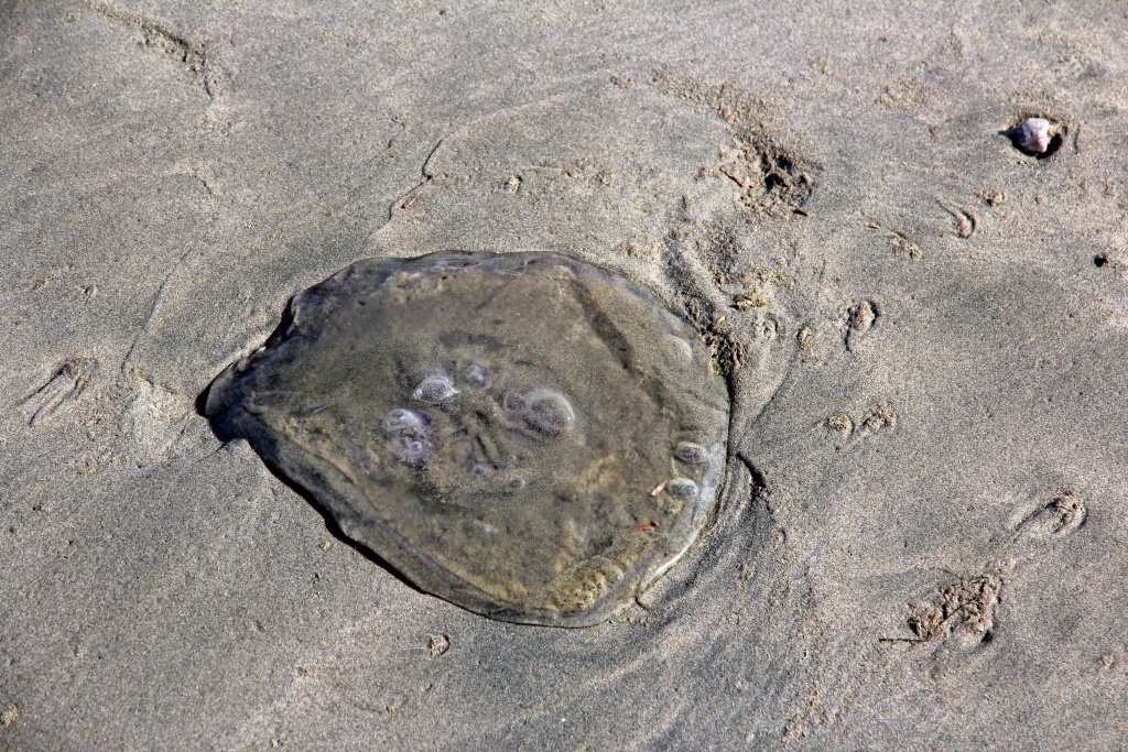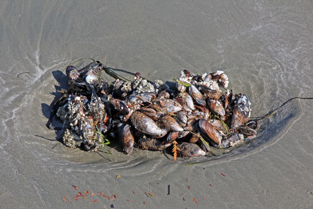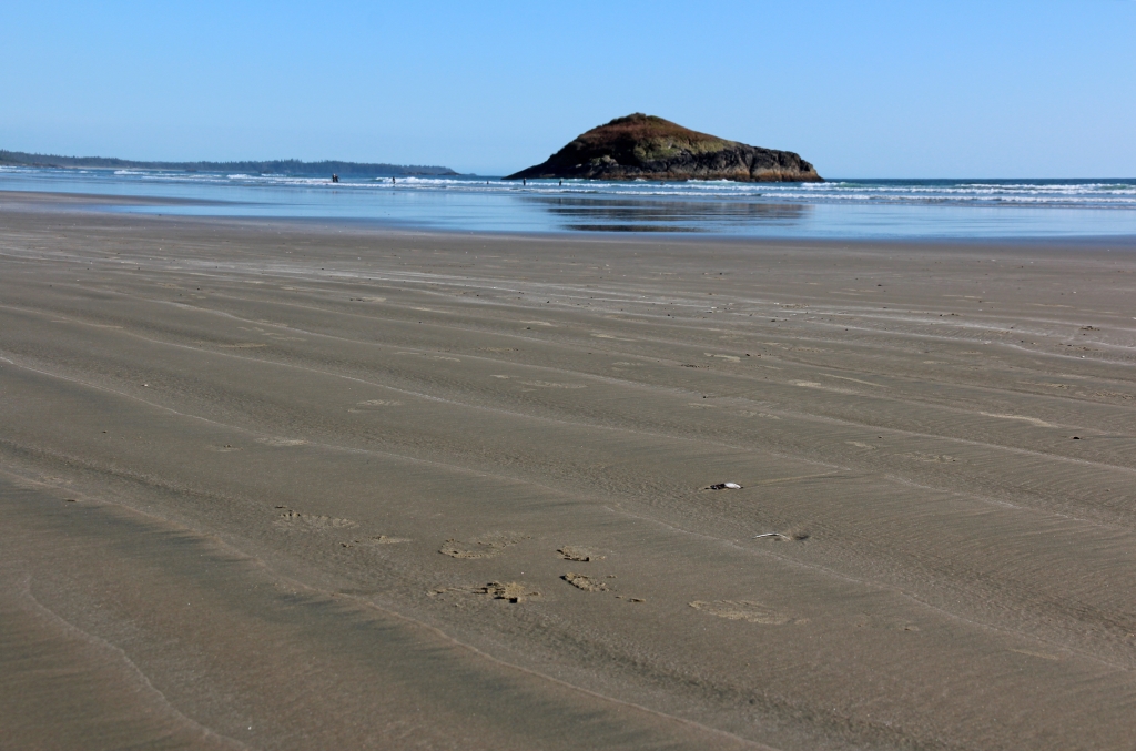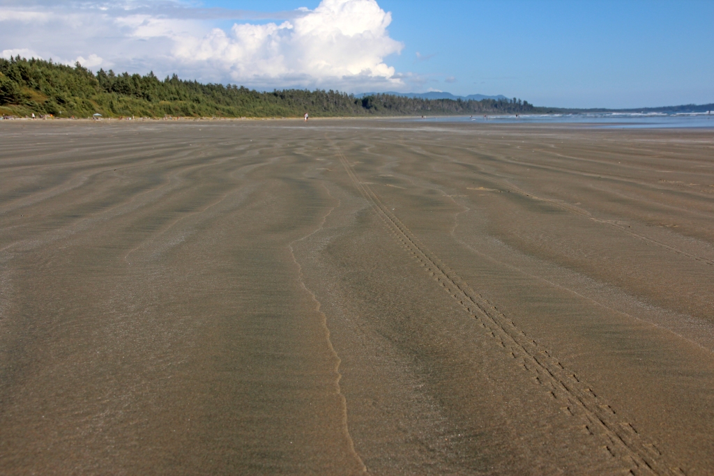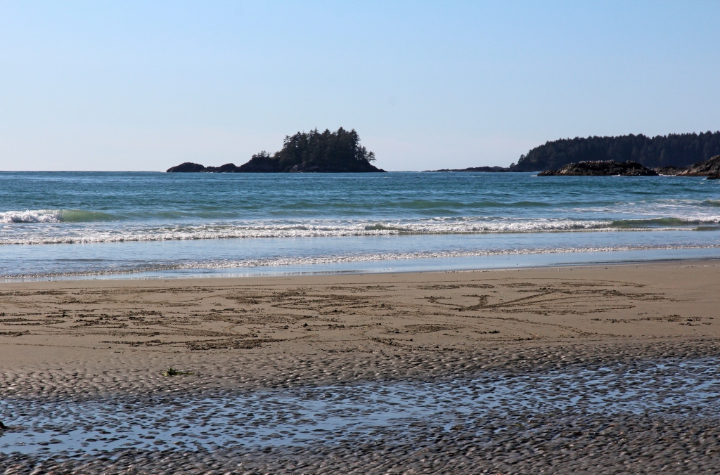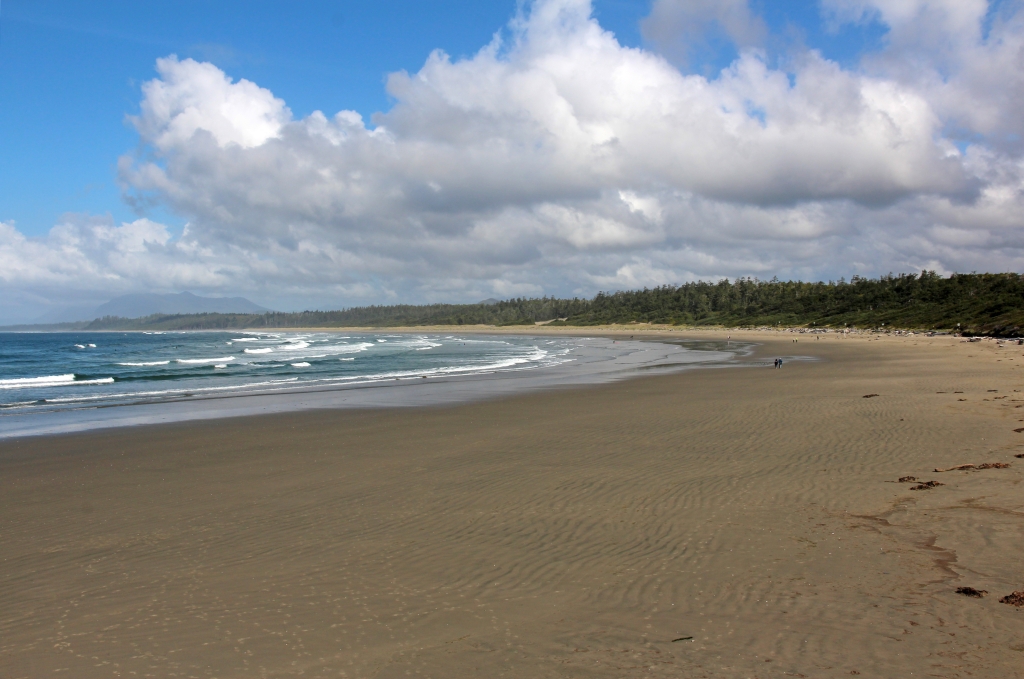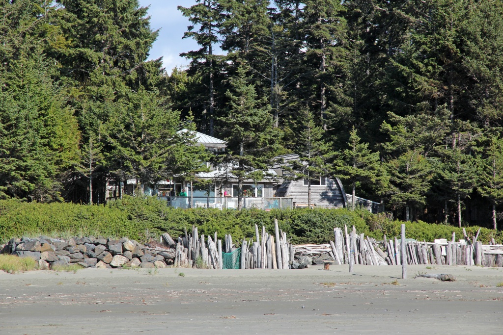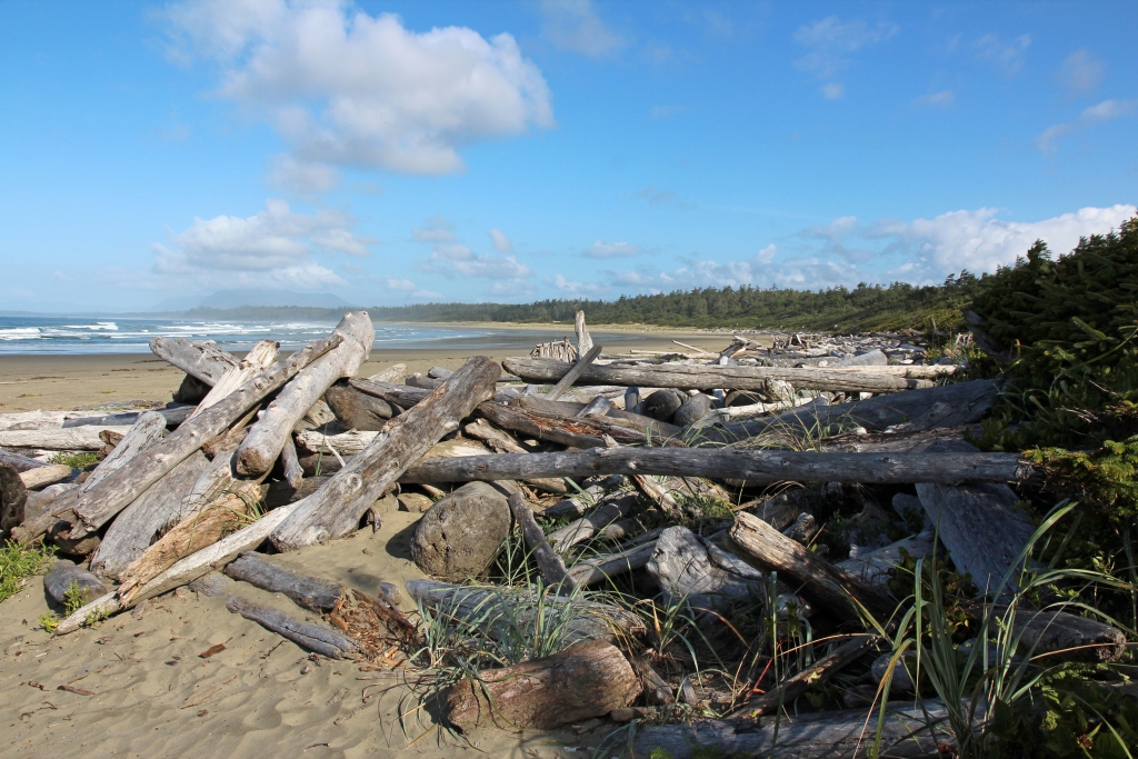 Den Aufenthalt im Zimmer nutzen wir noch zu einem längeren Telefonat via Skype. Dann fahren wir los in Richtung Tofino. Nach kurzer Fahrt kommt schon der erste Stop am Wickaninnish Beach. Wir gehen ein wenig am Strand spazieren und erfreuen uns an dem dort vorhandenen lebenden und toten Getier - eine entspannende Veranstaltung. Bevor wir weiterfahren, besuchen wir natürlich das Visitor Center nebst zugehörigem Shop, wo es ganz hübsche T-Shirts gäbe, wenn der Druck nicht so schlampig ausgeführt wäre. So begnügen wir uns mit ein paar Untersetzern mit indianischem Motiv.