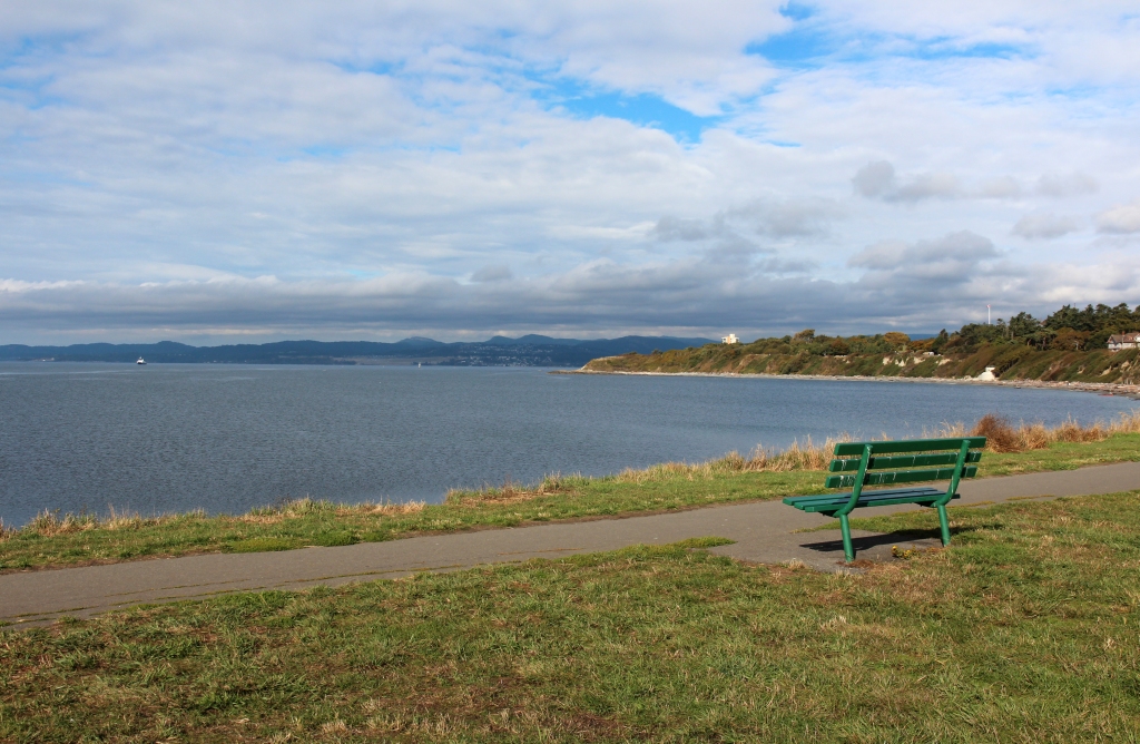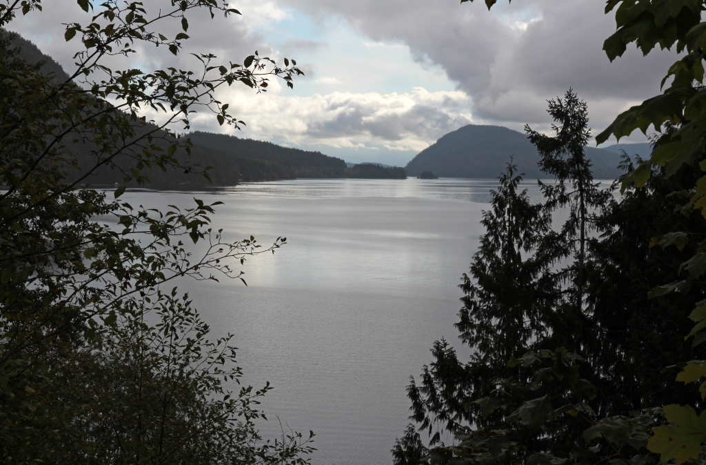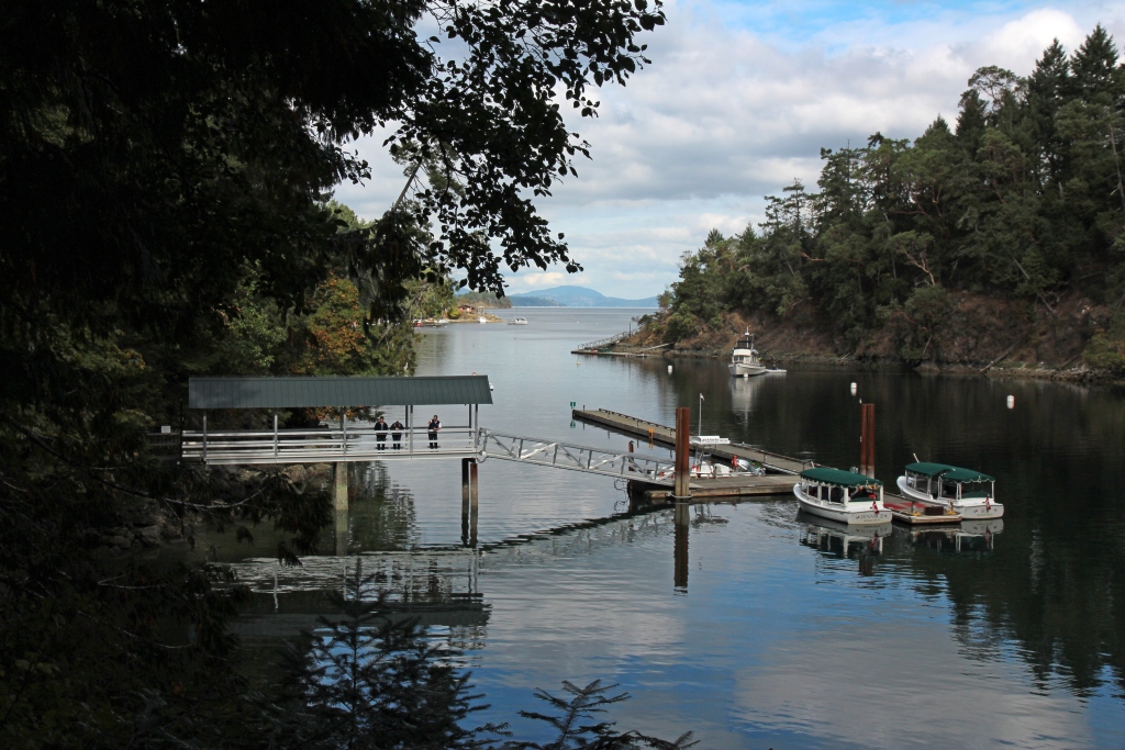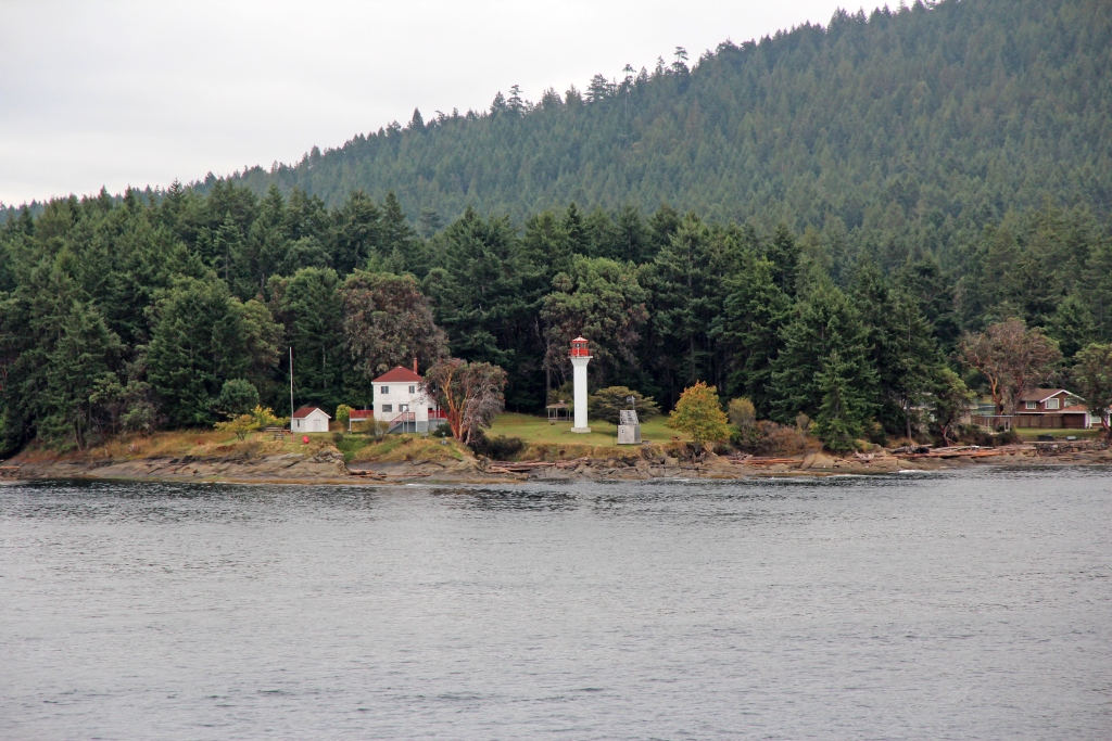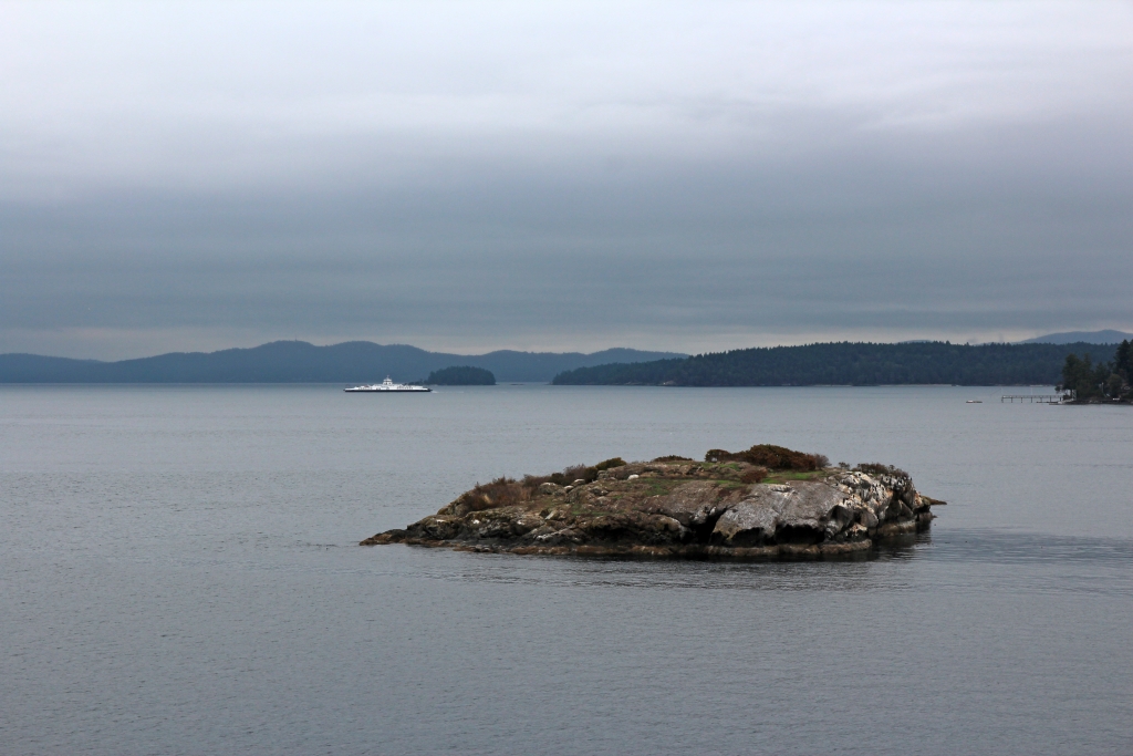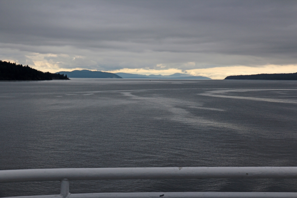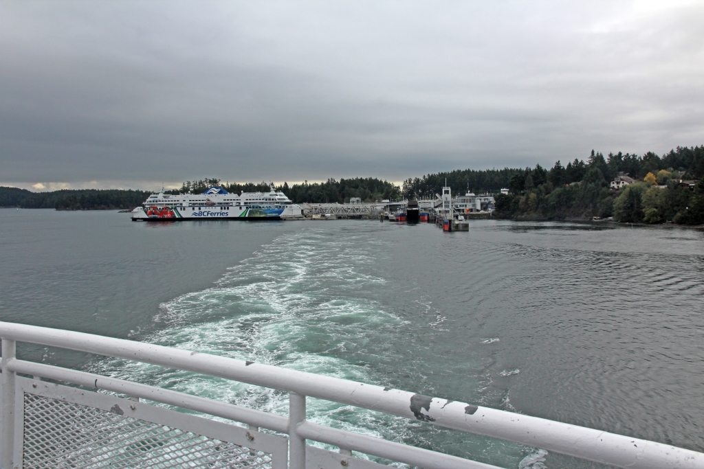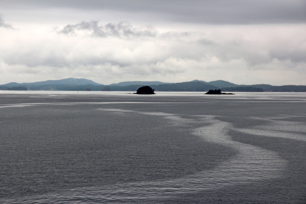 Ca. 09:15 starten wir also in Richtung Swartz Bay und sind schon kurz vor 10:00 an der Fähre. Heute sind wir pünktlich, sowohl beim Boarden als auch bei der Abfahrt. Da das Wetter nicht übermäßig einladend ist, lassen wir uns innen nieder und Marianne arbeitet am PC. Ich stromere nur ab und zu nach oben und mache ein paar Fotos, während wir an den vielen kleinen Inseln vor Vancouver Island vorüberfahren.