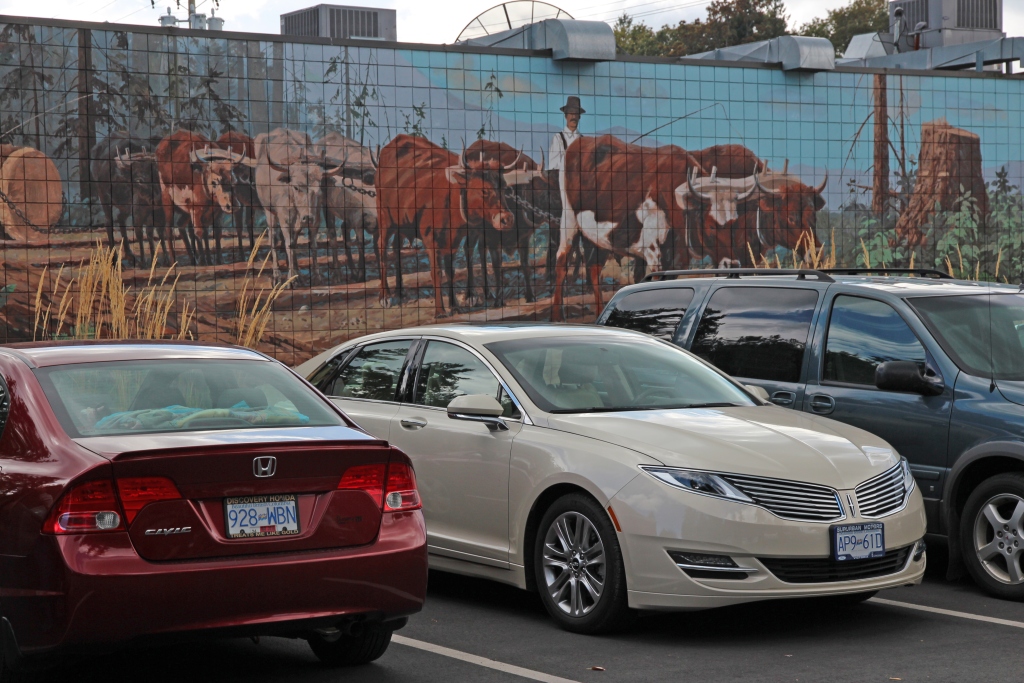 Wir kaufen im Visitor Center noch ein paar Kleinigkeiten ein und fahren über kleine Nebenstraßen durch ländliche Gebiete zurück in die Stadt. Das angepeilte Parkhaus an der Public Library ist voll, so daß wir eine kleine Schleife drehen und auf einem naheliegenden öffentlichen Parkplatz nahezu freie Wahl haben. Wir nehmen die Höchststrafe – 13,50 CAD für sicher nicht benötigte 24 Stunden, aber um sicherzugehen nehmen wir diesen Tarif, der nämlich bereits ab sechs Stunden zu berappen ist.