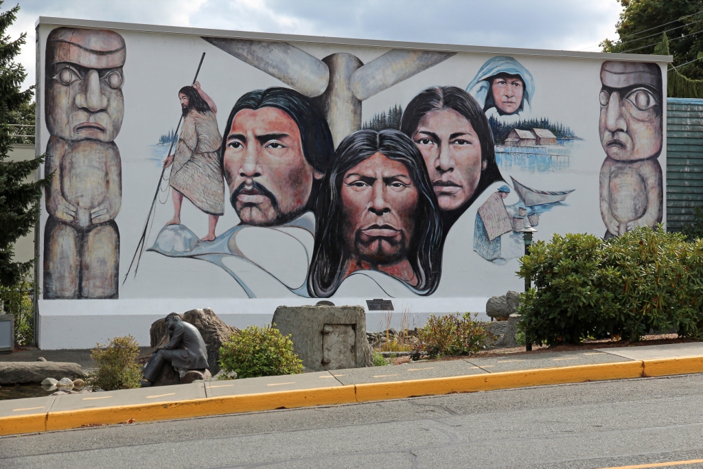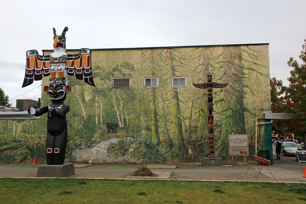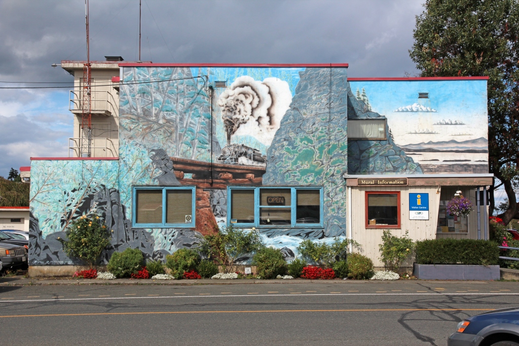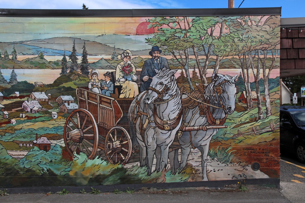 Kaum daß wir in Richtung Westküste weiterfahren, stoppen wir gleich wieder, und zwar ganz spontan in Parksville, wo uns beim Vorbeifahren das Museum lockt. Es handelt sich um eine hübsche Ansammlung von allerlei historischen Gebäuden, die dort zusammengetragen wurden: eine Schule, ein Postgebäude, ein halbwegs herrschaftliches Haus, eine Kirche, ein Ferienhaus usw. Außerdem findet man allerlei ältere technische Gerätschaften sowie kunsthandwerkliche Erzeugnisse der First Nations. Insgesamt ein ganz nettes Sammelsurium. Einen kurzen Aufenthalt ist das Museum in jedem Fall wert.