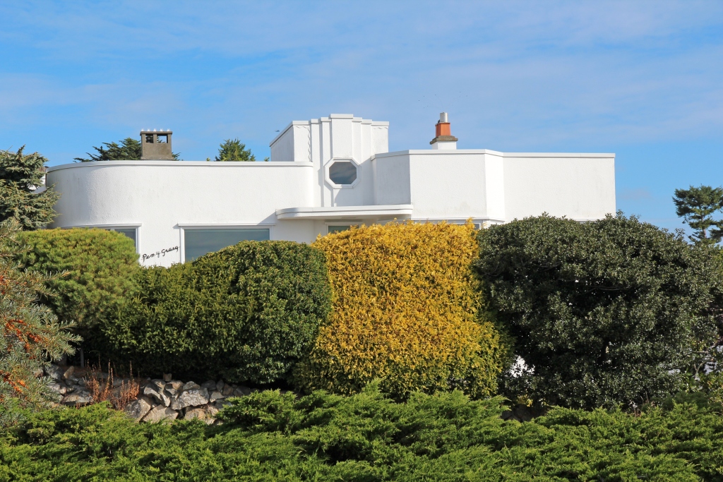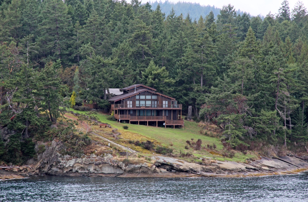 Daher wird es etwas spät mit der Abfahrt. Der Innkeeper gibt uns noch ein paar Merkblätter mit, die er für Tagestouren zusammengestellt hat, die wir aber auch für unsere Tour ganz gut gebrauchen können. Als erstes fahren wir aber nur den Madrona Drive, an dem unser B&B liegt, bis zum Ende, wo wir einen kurzen Spaziergang am Wasser unternehmen. Hier finden wir schöne Blicke, interessante Felsformationen und hübsche Villen.