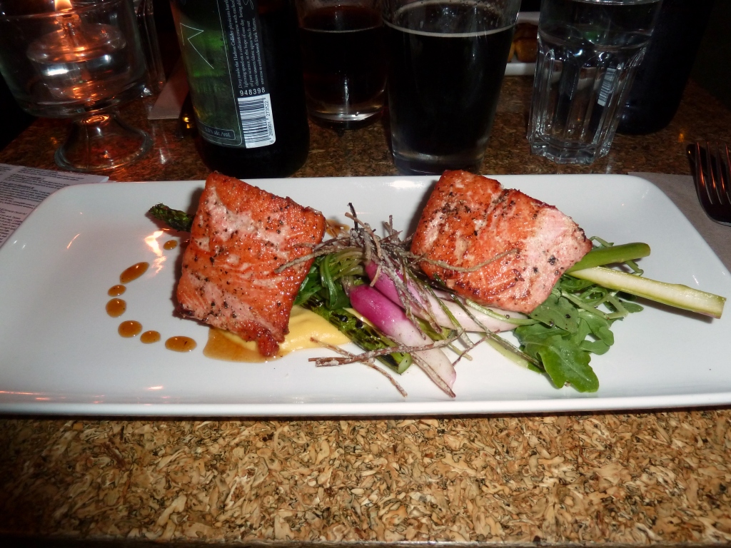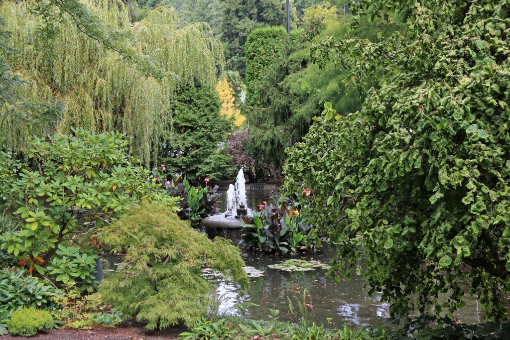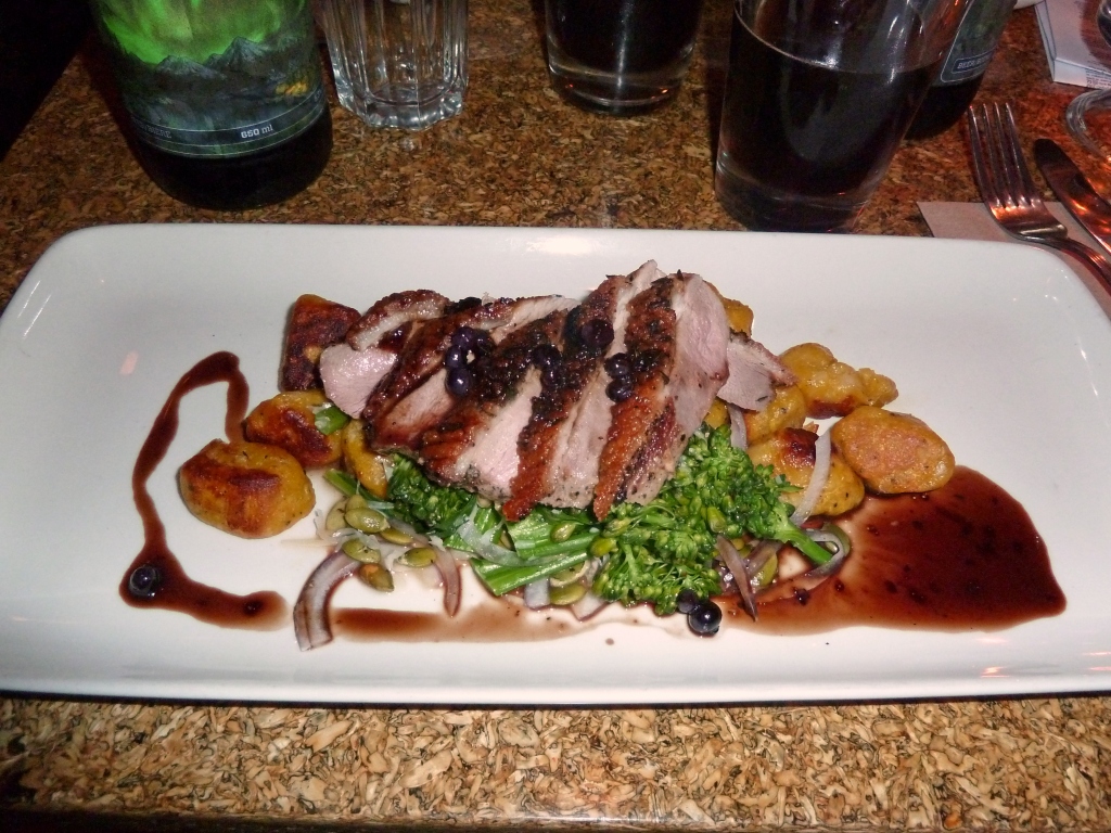 Dann laufen wir zurück zum Auto und fahren über Beacon Hill Park, wo das Wetter leider wieder ziemlich trübe ist, zum B&B. Von dort aus laufen wir zu Fuß zu einer weiteren Empfehlung des Innkeepers im Cook Street Village, nämlich zum Beagle Pub. Wir werden etwas verwundert angeschaut, als wir auf das Seating warten, bekommen aber doch einen recht guten Platz zugewiesen, nämlich eher am Rand des insgesamt ziemlich lauten Lokals. Das Essen ist gut, ich esse Lemon Halibut, Marianne (Halibut-) Fish & Chips. Dazu gibt es im Pub natürlich ein Bier.