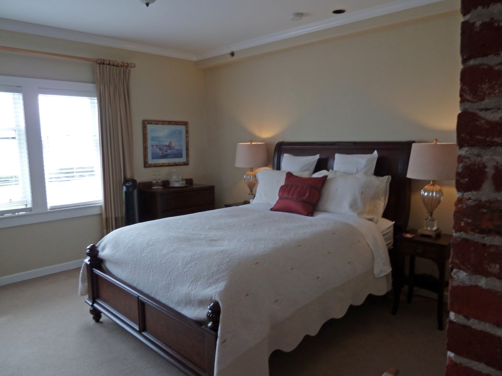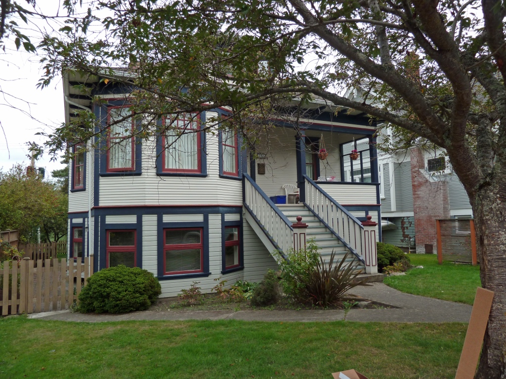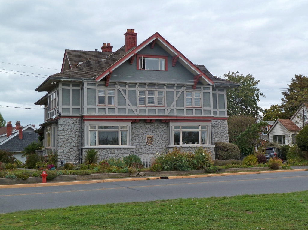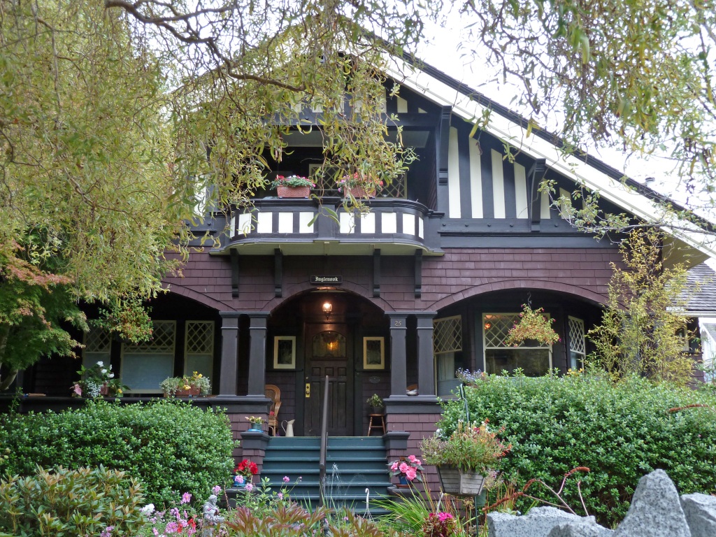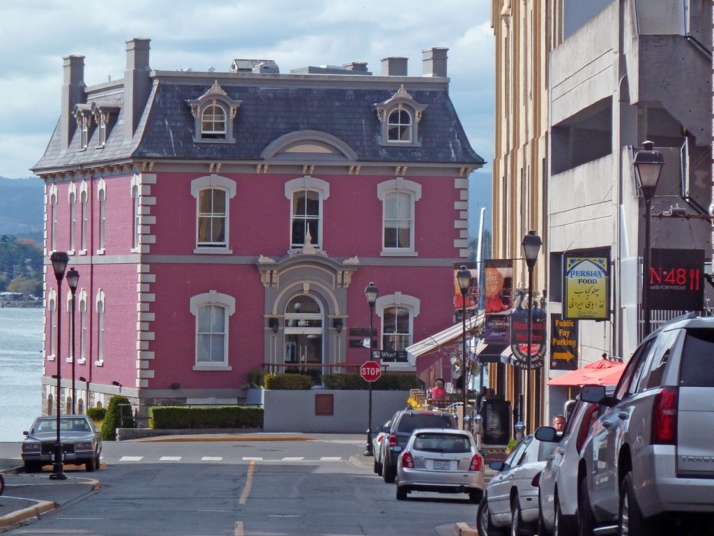 Dennoch haben wir insgesamt gut geschlafen und gehen um 08:30 zum Frühstück in den ersten Stock mit Blick aufs Meer (bzw. die Street of Georgia). Wir bekommen zunächst Joghurt mit Himbeeren und dann Oeufs Cocotte – sehr feine Angelegenheit und auch optisch ansprechend serviert. Wir ratschen ausführlich mit dem Innkeeper, seiner kanadischen Frau und Mitgästen, einem Anthropologen aus Victoria und seiner Frau. Sprachlich geht es kreuz und quer und wir unterhalten uns lange und intensiv über Gott und die Welt.