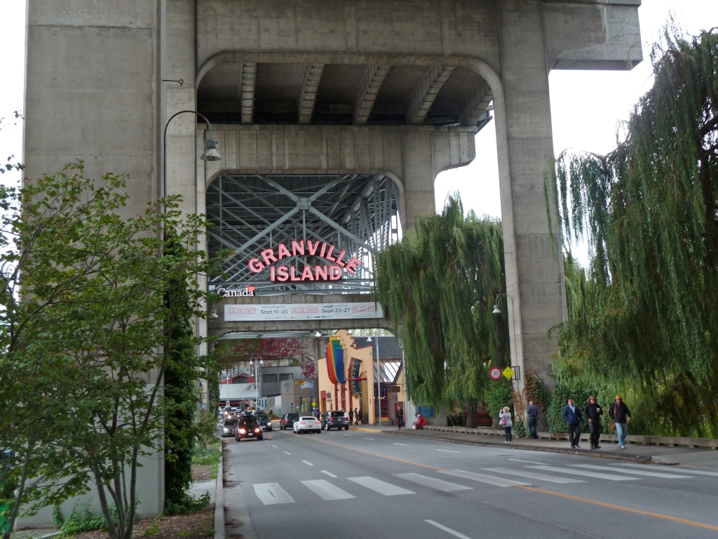 Wir fahren bis Granville Island, wo ich Marianne eher gegen ihren Willen zum Aussteigen nötige. Nachdem wir von der Bushaltestelle runter- und über die Brücke gegangen sind, ist sie aber recht schnell ganz begeistert. Viele kleine Shops mit interessanten Sachen sowie Kunst- und Kunsthandwerkswerkstätten locken zu einem Bummel, für den wir eine gute Stunde benötigen.