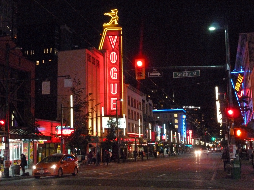 Für den Rückweg zum Hotel wählen wir die Granville Street, die uns als Einkaufstraße einen weitaus besseren Eindruck macht als die so hochgelobte Robson. Ab der Nelson Street fällt sie aber plötzlich ab.