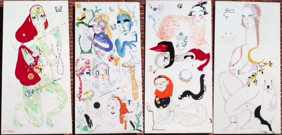 Victoria - Public Art in der Commercial Alley; die Bilder hängen jeweils durch Fenster bzw. Türen getrennt