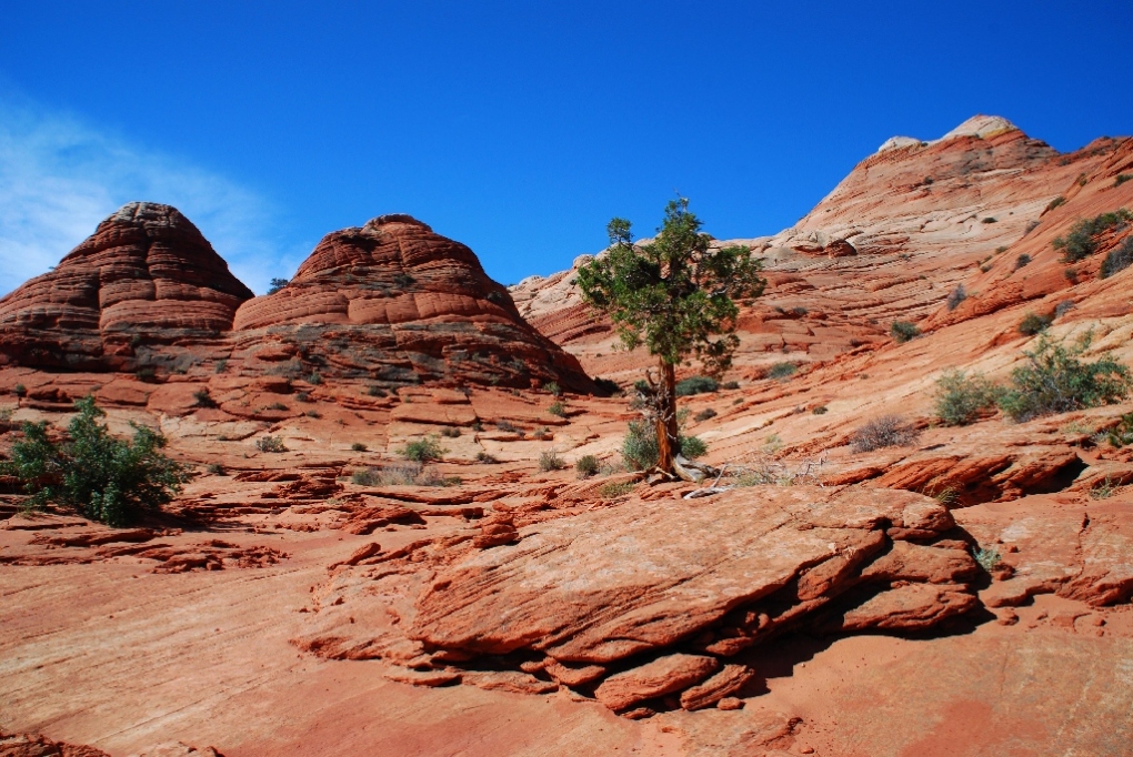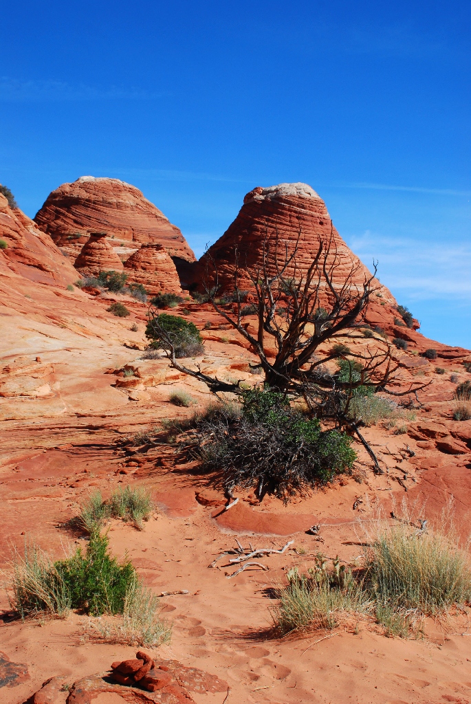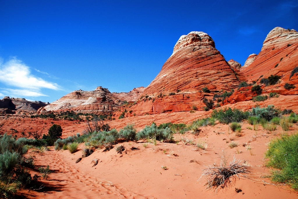 Heute war es so weit, wir haben viel darüber gehört und gelesen - The Wave. Endlich, ein Highlight auf unserer Reise. Die Erwartungen sind hoch. Wird es so wie man es sich vorstellt oder nicht? Wir werden sehen. Ziemlich aufgeregt standen wir wieder sehr früh auf, frühstückten, schmierten Sandwiche und gegen 07.00 Uhr ging es los. Das Wetter war jetzt schon  warm und sonnig. Wir fuhren auf dem Highway 89 Richtung Süden. Kurz vor der Paria Contact Station bogen wir wieder auf die House Rock Valley Road und folgten der Strasse ca. 8,5 Meilen. Die Straßenverhältnisse waren nicht schlecht und mit einem SUV gut zu befahren. Teils ein wenig holperig und ein paar tiefe sandige Stellen waren dabei, wir kamen aber gut durch. Mit einem Wohnmobil wäre es sicher schwieriger geworden.
