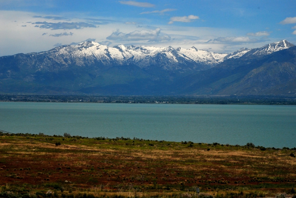 Wir bogen auf den Highway 6 ab um den Utah Lake zu umrunden. Aber erst mal Mittagessen. In Genola hielten wir an der Tankstelle/Restaurant/Kaufhaus und es gab lecker Shrimp and Chicken Combo, Riesenportionen - mit Getränken 9$. Viel Frittiertes für wenig Geld. Gut gestärkt fuhren wir auf dem Highway 68 weiter. In Saratoga Springs entstehen gerade einige  neue Wohngebiete mit vielen großen, luxuriösen Häusern. Sicher nicht billig bei dem Ausblick.