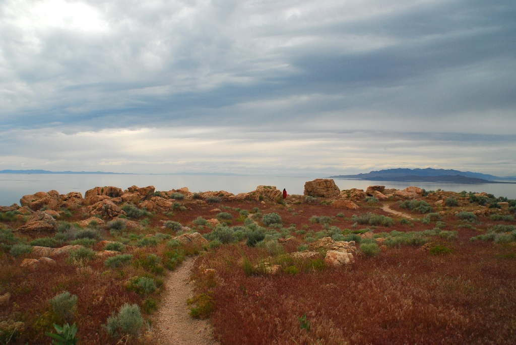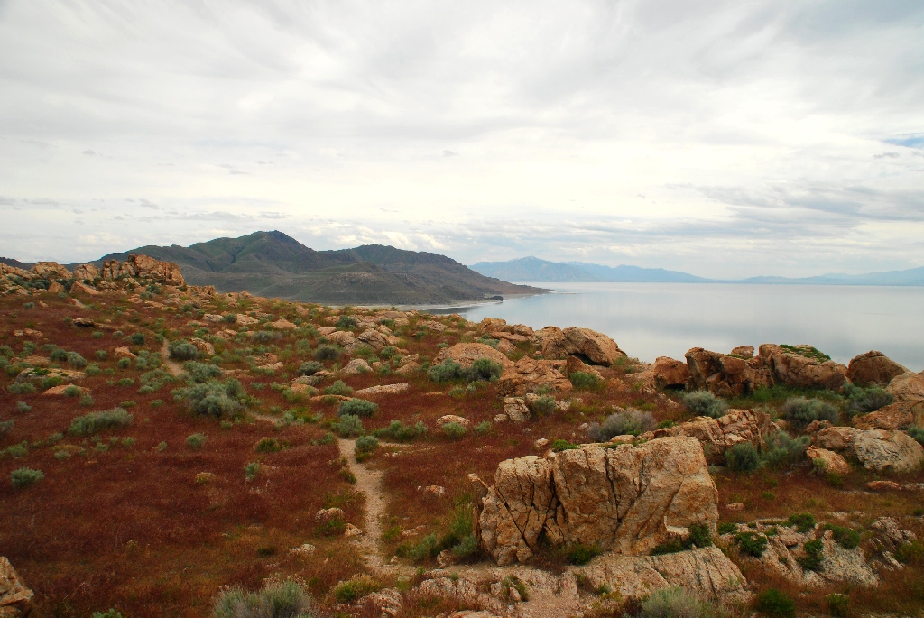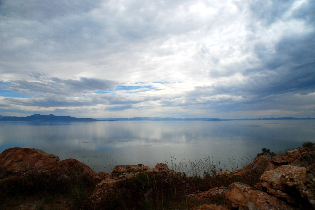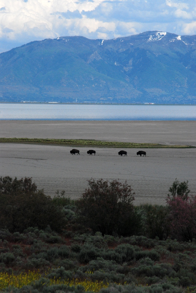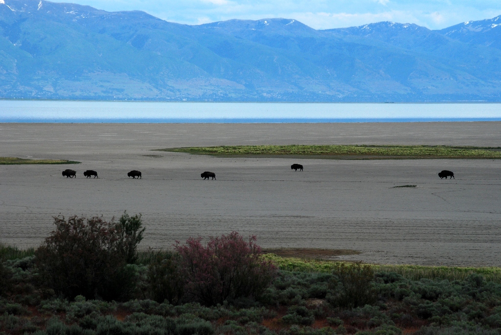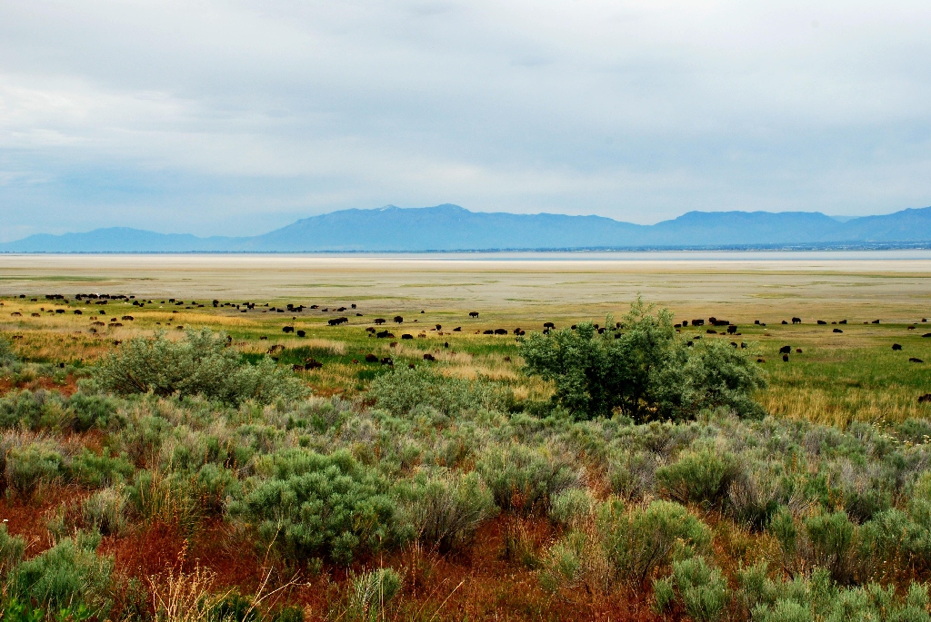 Weiter ging es wieder uf dem I-15 und unser nächster Stopp war derAntelope Island State Park, eine Insel im Great Salt Lake. Dort angekommen fuhren wir zuerst über den ca. 7 Meilen langen Straßendamm auf die Insel. Rechst und links des Dammes tummelten sich sehr viele Möven und andere Seevögel. Mit den Bergen im Hintergrund sah das echt toll aus. Sollen wir schnell stehen bleiben und Fotos machen? Aber was war das??  :shock: Was ist das für ein Geruch? Schnell alle Fenster zu und die Luftzufuhr abschalten. Boah, es stank ganz extrem, ein widerlicher fauliger Geruch, der sich richtig in der Nase festsetzte. Und trotz der Sofortmaßnahmen war es ziemlich übel. Nein nicht stehen bleiben, sondern Gas geben und weg hier.