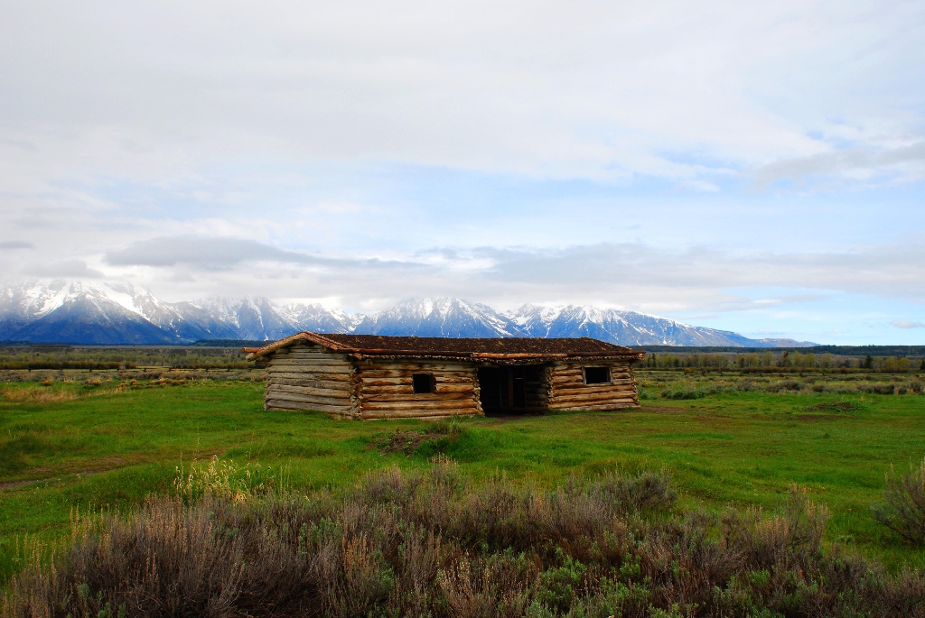 Nach dem Frühstück und dem auschecken fuhren wir los – unser heutiges Ziel ist der Yellowstone Park, genauer gesagt West Yellowstone. Dort werden wir die nächsten drei Tage bleiben. Auf dem altbekannten Highway 89 fuhren wir Richtung Norden. Unser erster Halt war bei der  Cunningham Cabin, eine alte Blockhütte, die um 1880 erbaut wurde. Es nieselte leicht und die Berge waren leicht in Wolken gehüllt, tolle Stimmung.