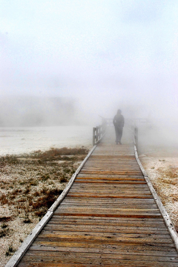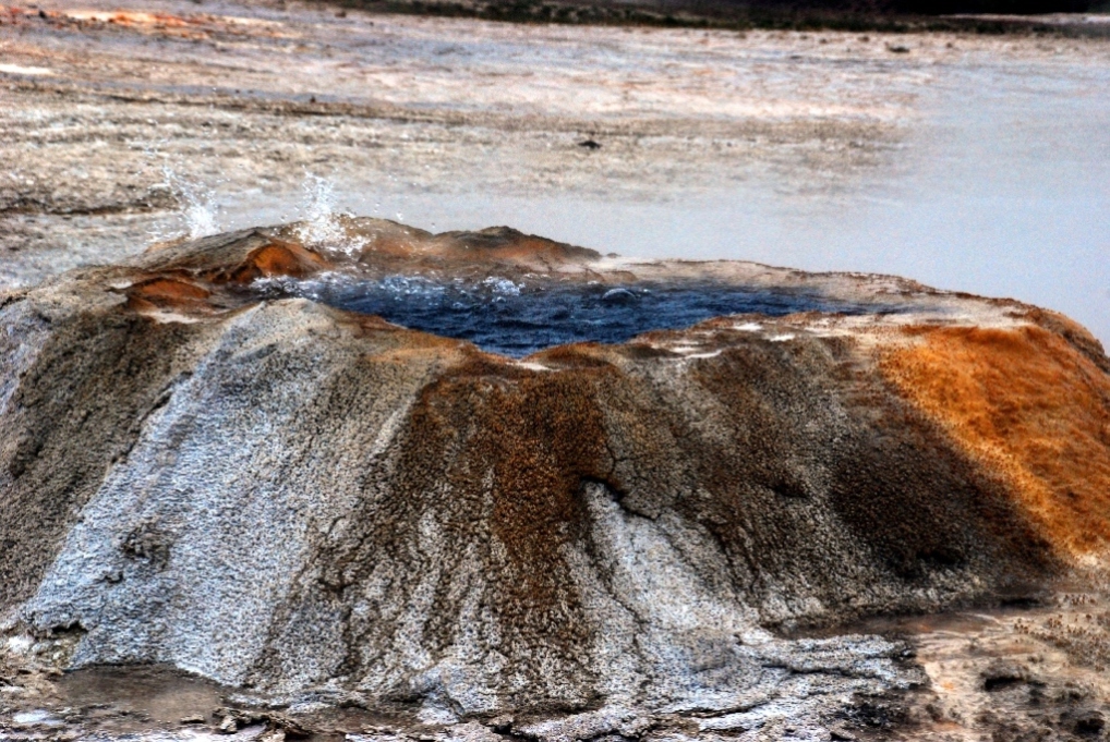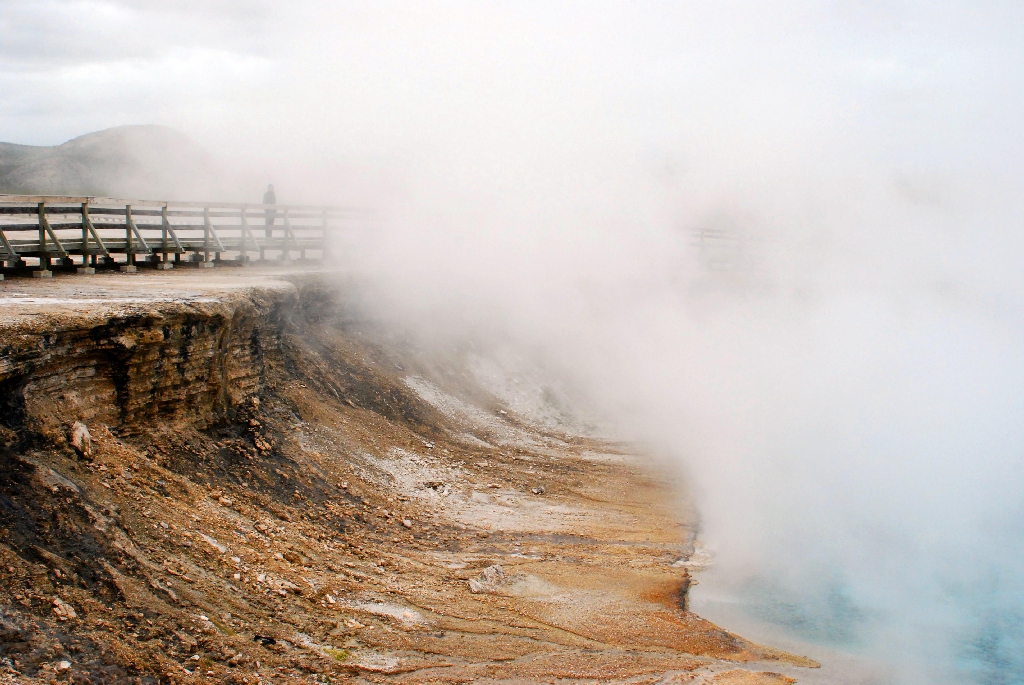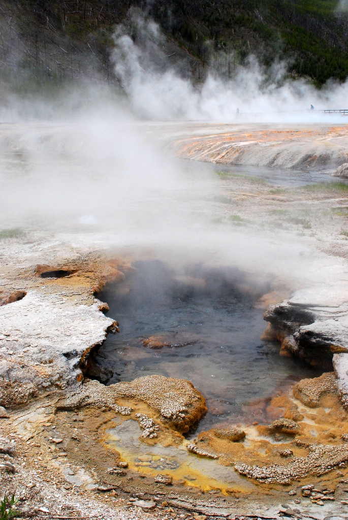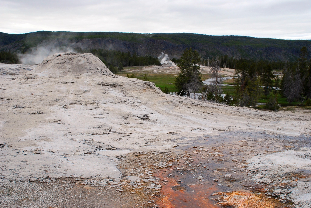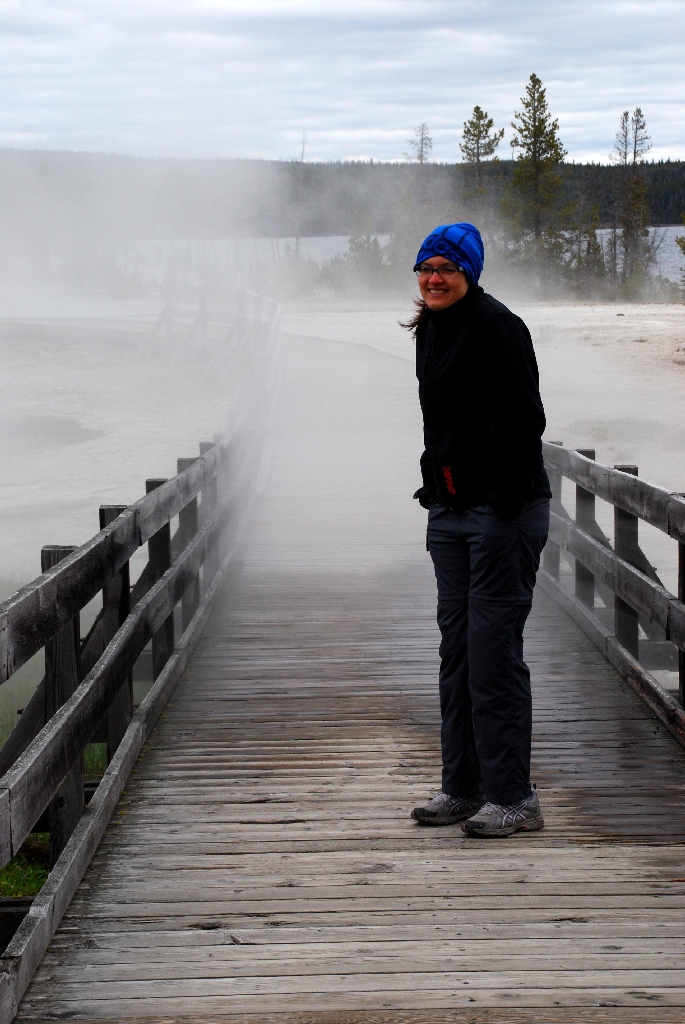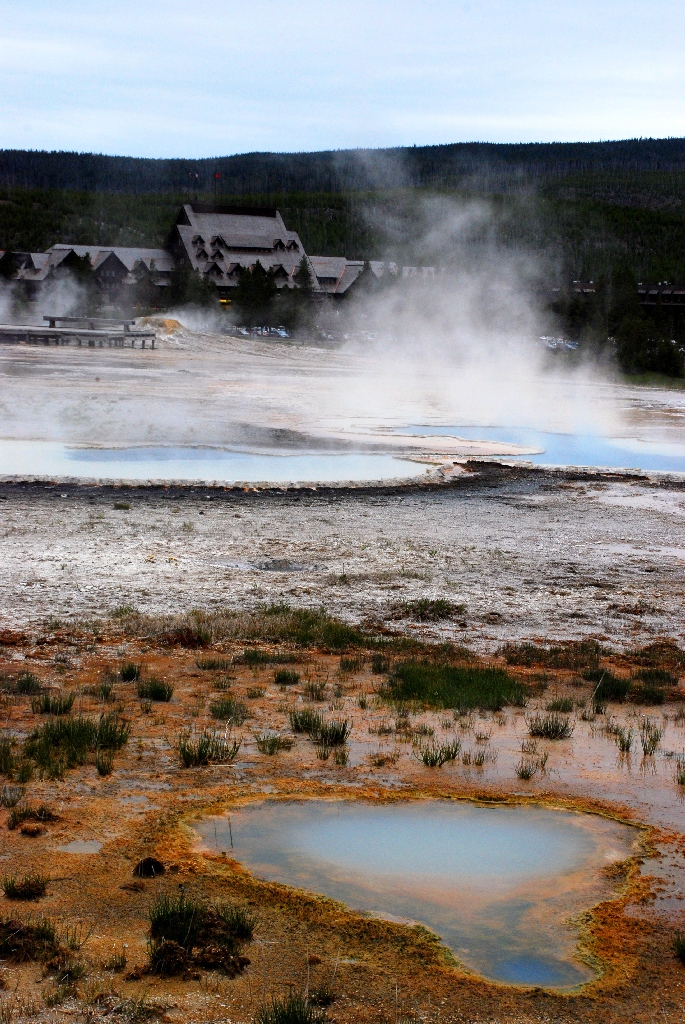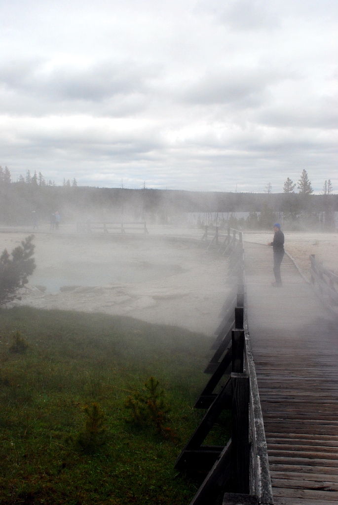 Nicht schlecht, aber irgendwie hatten wir mehr erwartet, oder sagen wir so, andere Ecken des Parkes fanden wir viel beeindruckender. Zum Aufwärmen gingen wir in die Old Faithful Lodge auf eine schöne heiße Tasse Tee. Anschließend machten wir noch eine kleine Wanderung um den Geysir Hill, auch hier dampfte  und brodelte es aus vielen Erdspalten und Öffnungen.