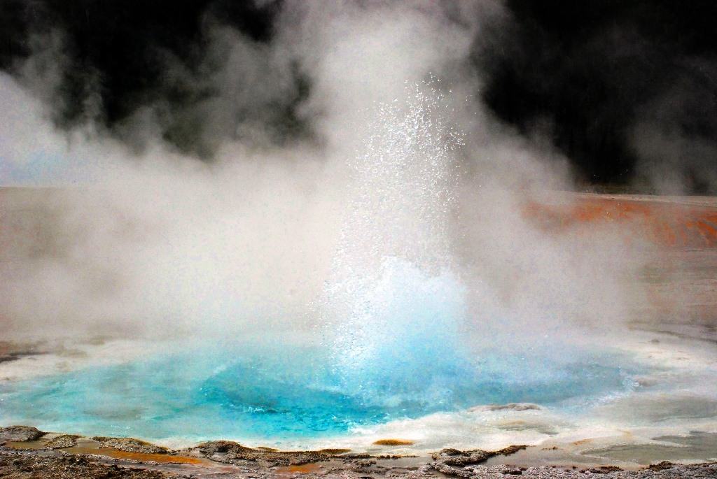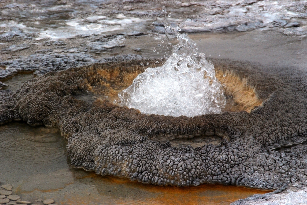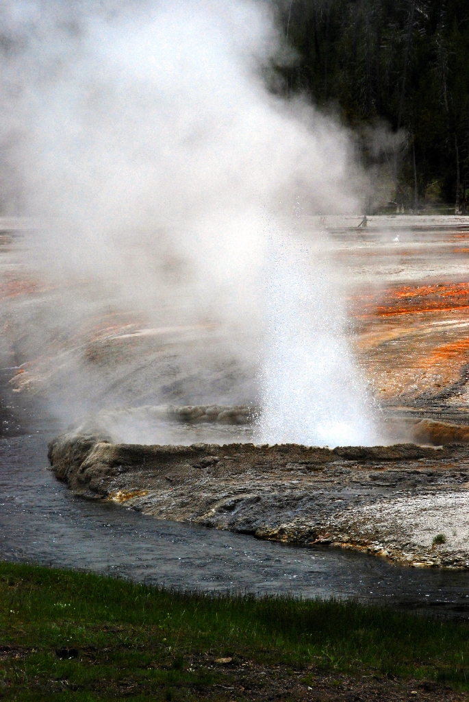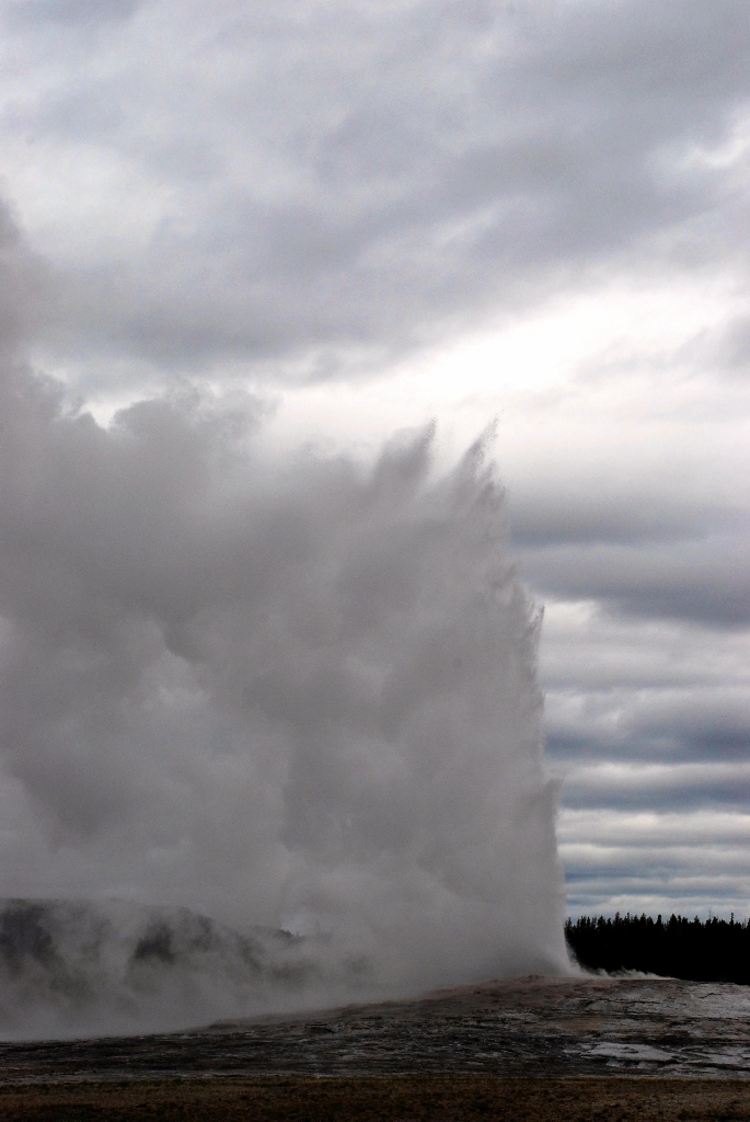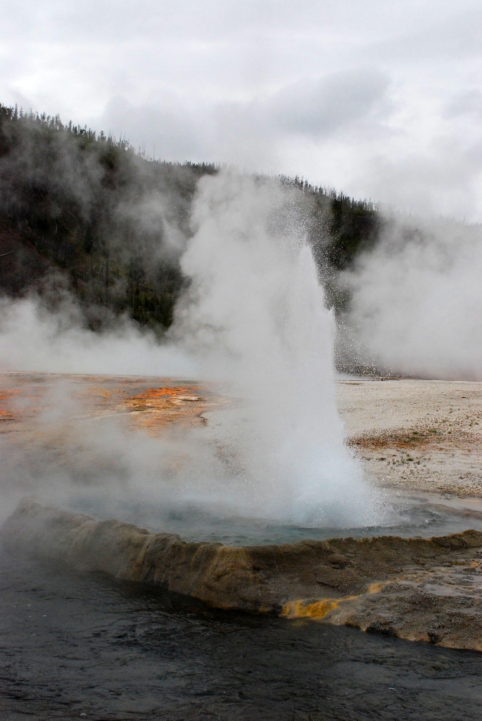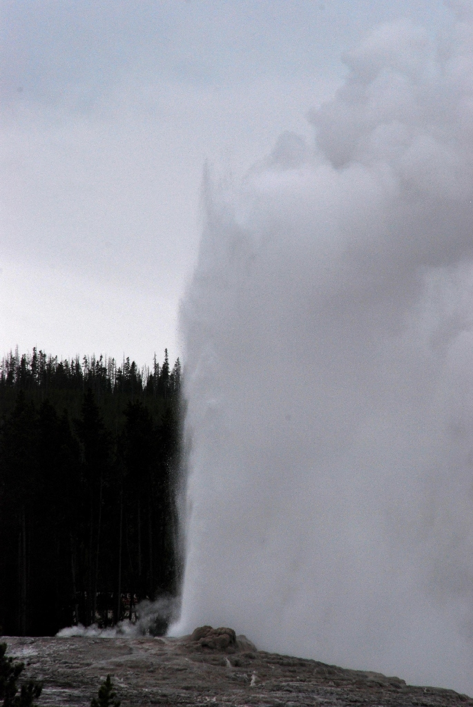 Und… nach ca. 45Minuten sahen wir den Old Faithful ein zweites Mal „spucken“ und dieses mal war die Eruptionssäule deutlich höher.