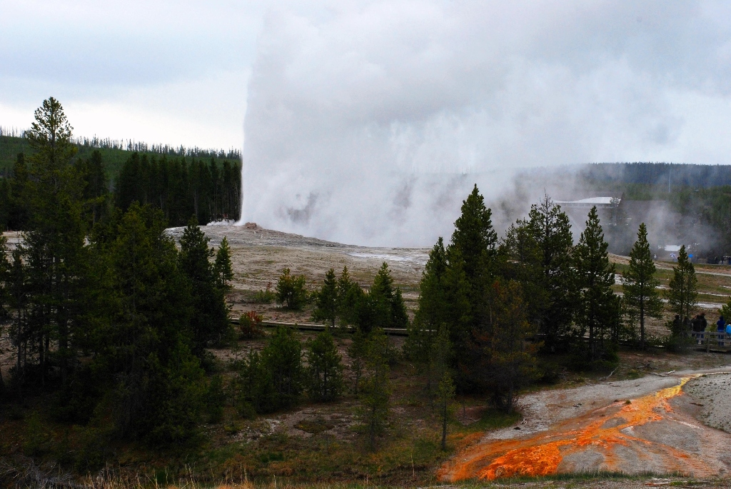 Nach gut 1 Stunde fuhren wir weiter, nächster Stopp war die Old Faithful Area. Wir warteten mit hunderten anderen Besuchern noch ca. 30 Minuten bis der Geysir sein kochend heißes Wasser in die Luft schleuderte.