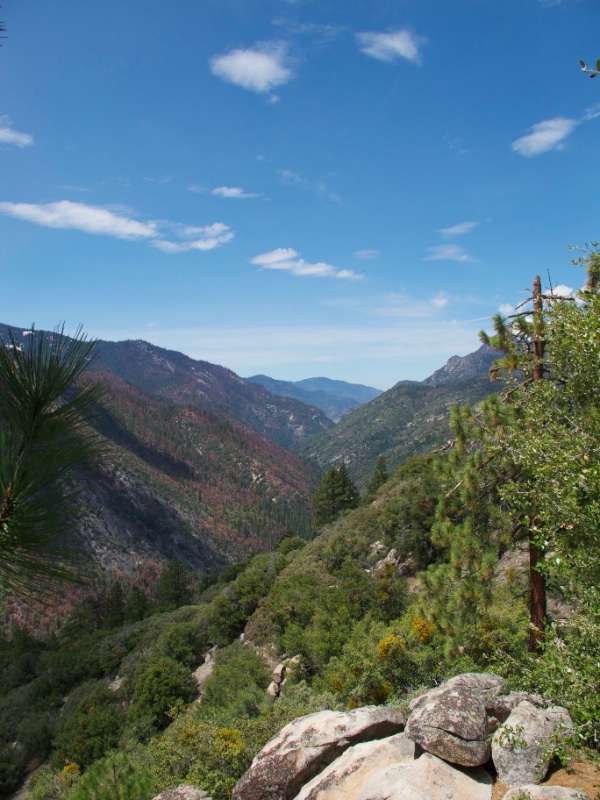 Den Weg zurück nehmen wir nicht wieder über den Mist Trail, sonder gehen über Teile des John Muir Trail zurück. Dieser ist nur im oberen Bereich gesperrt.
