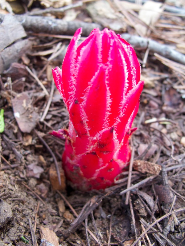 Unterwegs wurden wir von anderen Hikern (die einzigen die wir an diesem Tag gesehen haben) angesprochen. Etwas weiter oben würde eine rote, komische Pflanze aus dem Boden wachsen. Sie hätten sowas noch nie gesehen...