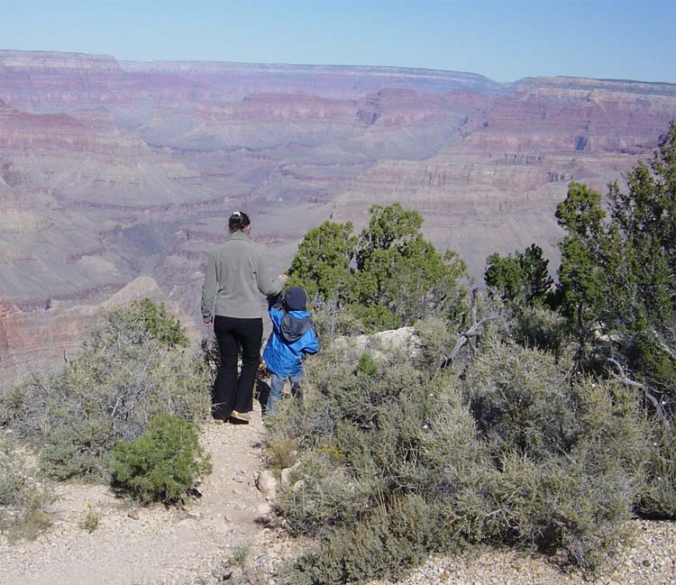 Heike oder ich gingen mit Jonas (im Kinderwagerl) auf der Straße. Der unbefestigte Weg direkt an der Kante zum Canyon ist meiner Meinung nach nicht zu unterschätzen, vor allem mit Kindern.