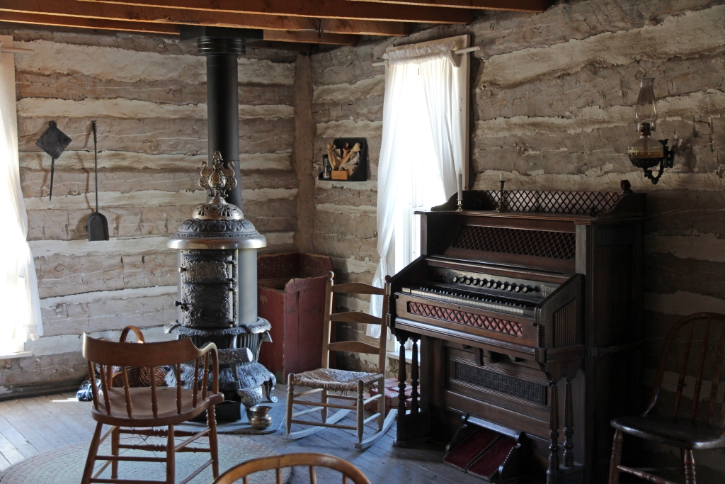 Golden, Clear Creek History Park, Pearce/Helps Cabin - Wohnraum mit Harmonium