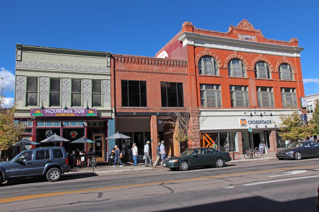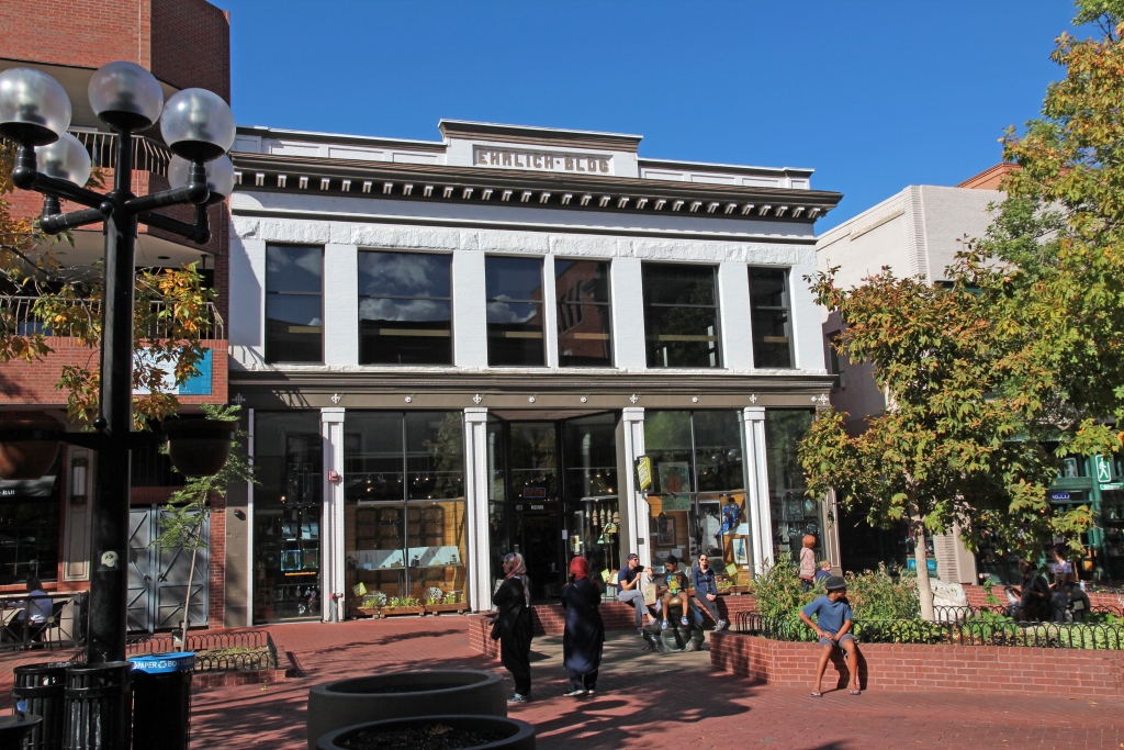 Damit haben wir Golden wohl weitgehend "erledigt" und machen uns auf den Weg nach Boulder, wo wir in einen ziemlich zähen Stau geraten. Dafür bekommen wir in einem Platz in einem Parkhaus direkt an der Pearl Street Mall, der am Samstag auch noch kostenfrei ist. Wir gehen die Mall auf und ab und suchen nach dem Restaurant, wo wir vor etlichen Jahren gute kleine thin-crusted Pizzen bekommen haben. Zunächst fallen wir allerdings in einen Laden ein, der auf Windspielzeug im weitesten Sinne spezialisiert ist und kaufen Drachen für die Enkelinnen sowie einen windbetriebenen Kanufahrer für einen Neffen. Bei der Restaurantsuche sind wir uns ziemlich sicher, welches Lokal es war – nur der Betreiber hat gewechselt und der jetztige Betrieb erscheint uns nicht so einladend. So kehren wir schließlich nach längerem Hin und Her bei Sforno ein und essen zusammen eine quattro-formaggi Pizza mit original Moretti-Bier. Die Pizza ist ganz ordentlich, aber wir schaffen sie trotzdem nicht ganz.