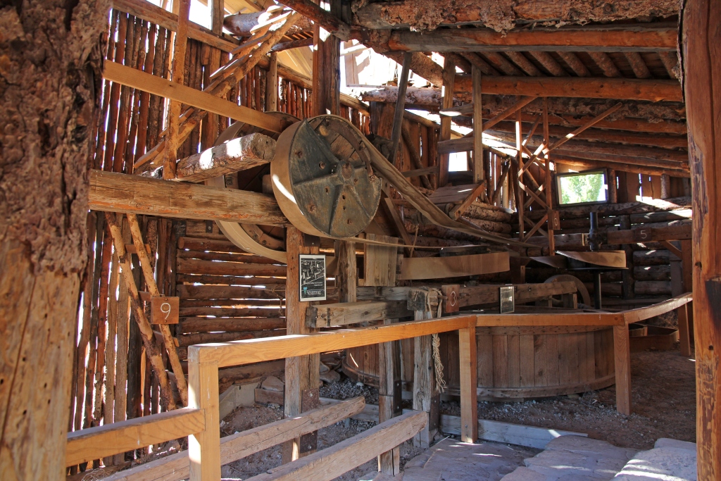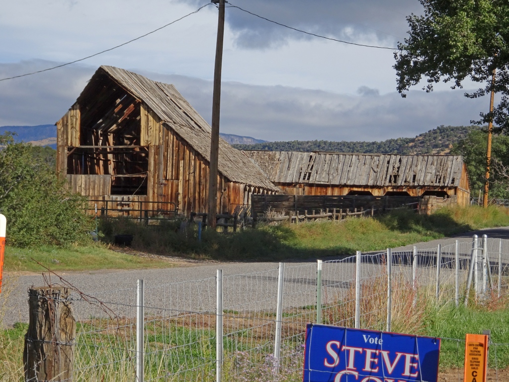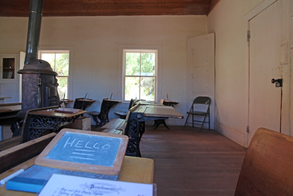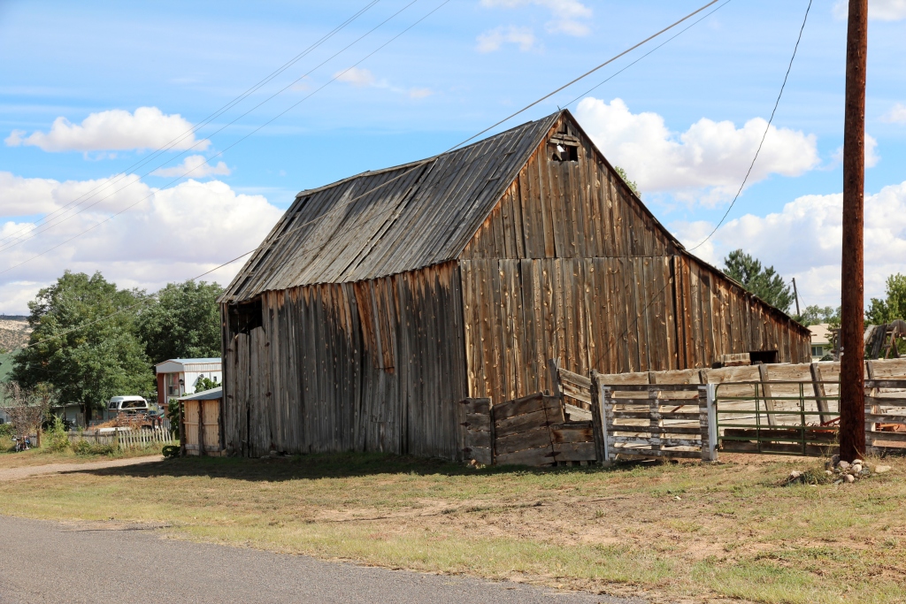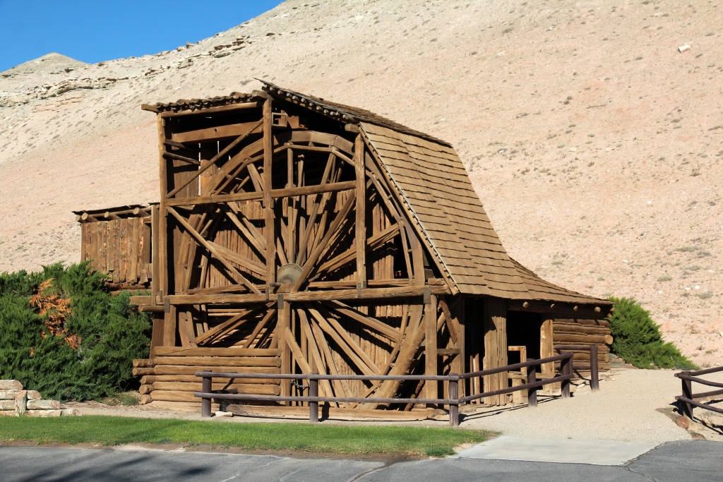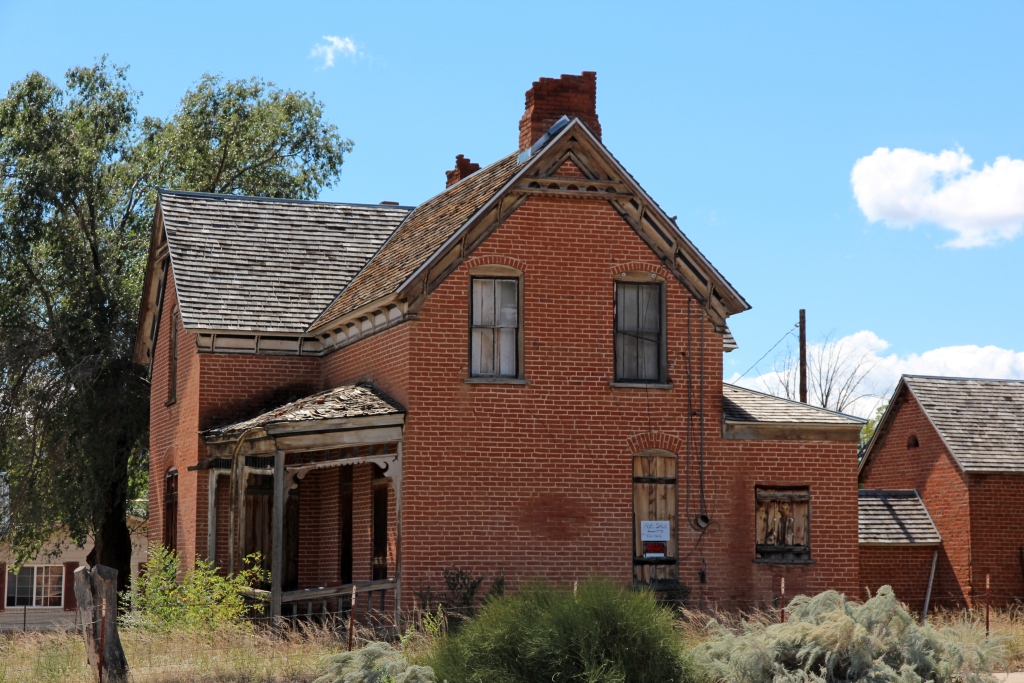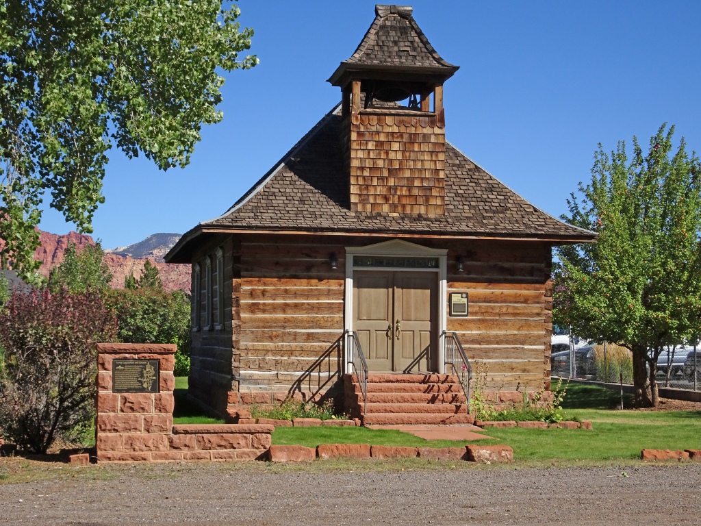 Wir gehen noch ein wenig umher und entdecken dann im schön hergerichteten ehemaligen Peoples Exchange Gebäude noch eine Ausstellung mit besonders schönen hochwertigen Quilts, die aber nicht zum Verkauf stehen (und wohl auch unerschwinglich wären). Dort nehmen wir noch einen Stadtplan mit Liste der historischen Gebäude mit, anhand dessen wir noch ein wenig in Escalante herumlaufen und -fahren. Bevor wir zum Auto kommen, nehmen wir aus einer Kiste, die zu diesem Zwecke am Straßenrand steht, noch zwei Birnen mit.