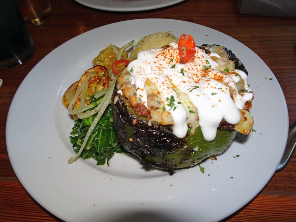 Wir gehen gleich ins angeschlossenen Brewpub, essen eine Suppe und je einmal Fish&Chips und trinken ein hausgebrautes Bier dazu. Nach einem kurzen Spaziergang zu den Thermen und durch den Ort fallen wir todmüde in unserem Zimmer ein.