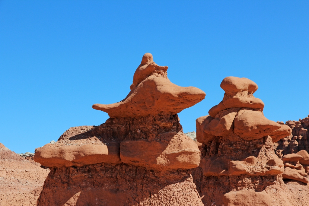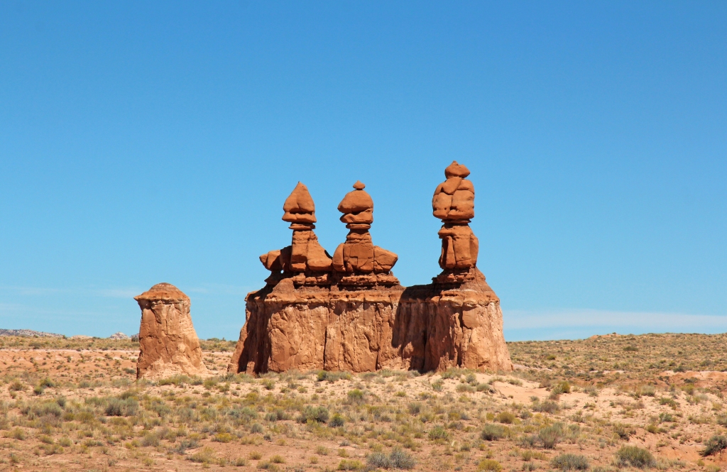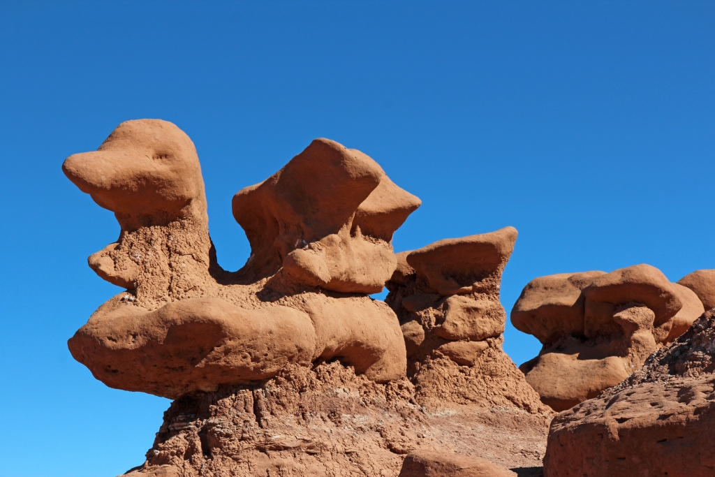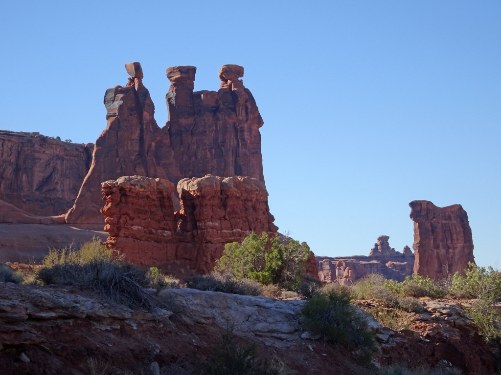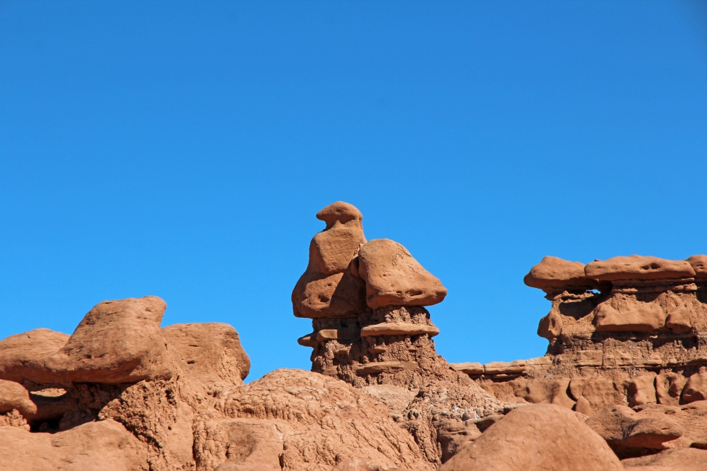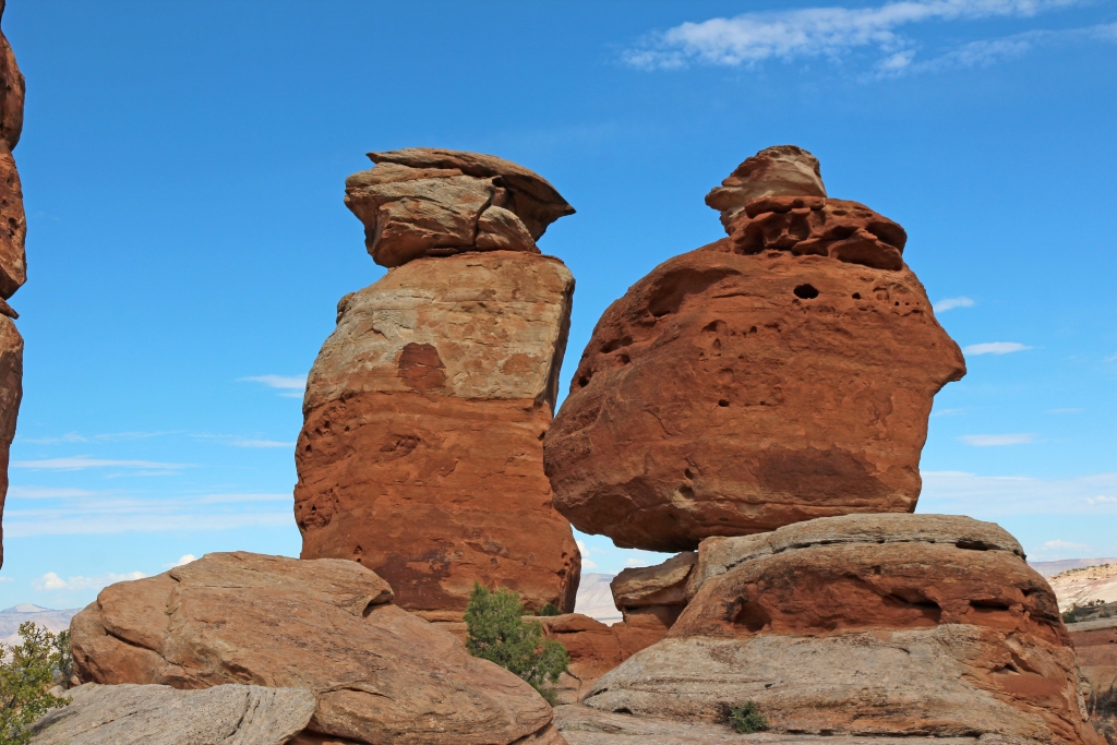 Wie auch immer, es hat sich gelohnt. Man findet sich auf einer Anhöhe inmitten kurioser Felsgestalten, die die Fantasie anregen. Zurück am Auto entscheiden wir uns, daß das genug an Laufaktivitäten war, zumal wir ganz schön ins Schwitzen gekommen waren. Wir verzichten auf den Miracle aka Potatoe Rock und steuern die I 70 in Richtung Denver an.