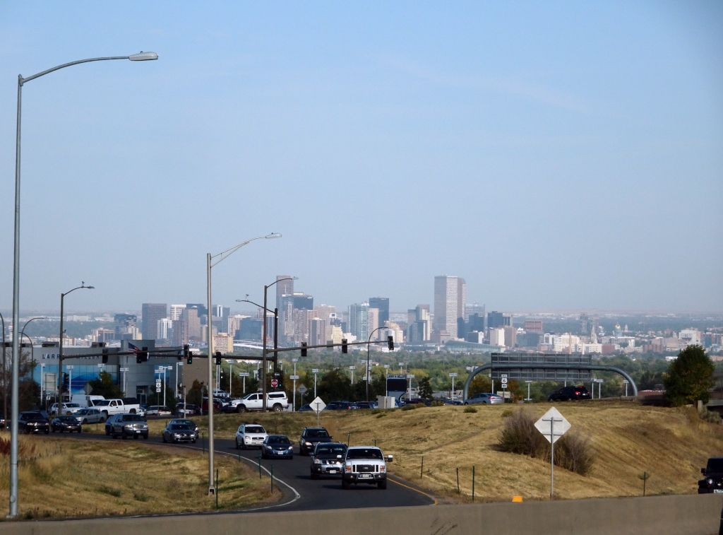 Anschließend geht es zügig nach Denver hinunter und es wird allmählich schön und warm. Je näher wir der Stadt kommen, desto dichter und hektischer wird der Verkehr. Beim Abzweig von der US 6 in die I 25 kommen wir sogar in einen veritablen Stau, der uns aber nicht allzu viel stört, weil wir gleich wieder nach rechts abbiegen.