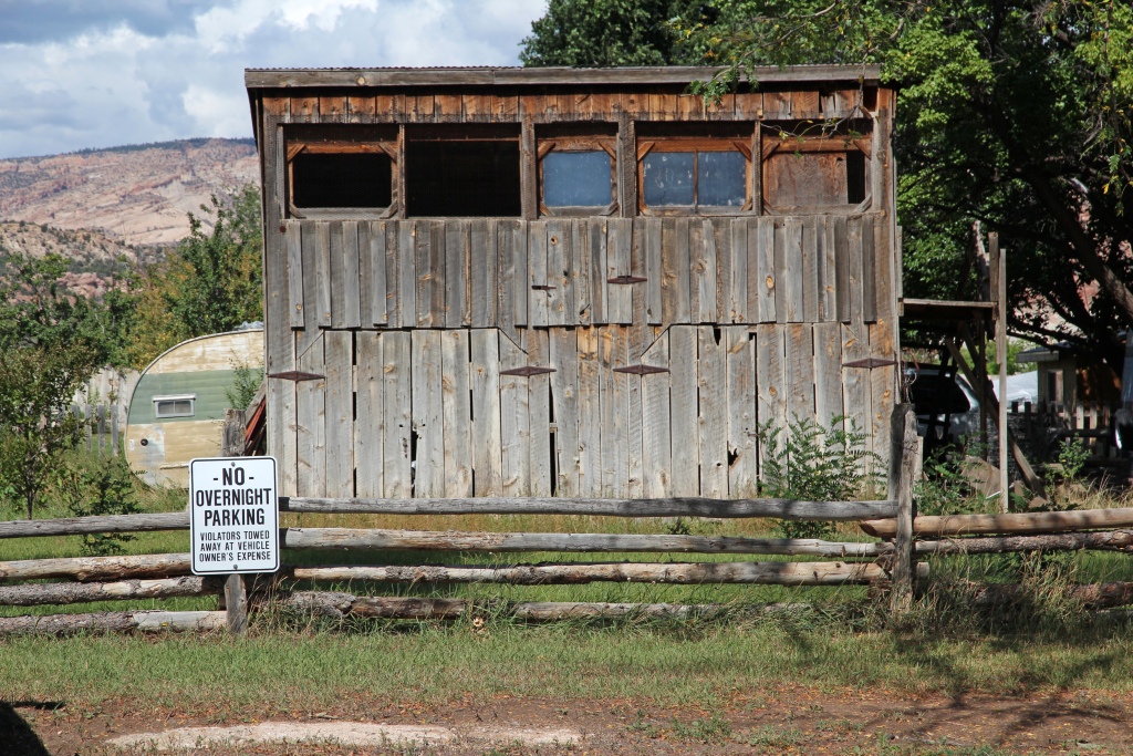 In der Boulder Mountain Lodge bekommen wir ein schönes Zimmer im OG des Haupthauses. Im Common Room erzählt ein Local Guide uns und einem Paar aus Florida einiges über die Wander- und Ausflugsmöglichkeiten. Auf meine Frage zum Burr Trail und Strike Valley Overlook geht er intensiv auf den Burr Trail ein. Den "Singing Canyon" empfiehlt er als "the split" – der Name "Singing Canyon" behagt ihm offensichtlich nicht, den hätten irgendwelche Touristen erfunden. Zu den aktuellen Straßenverhältnissen scheint er aber keine konkreten Kenntnisse zu haben – er empfiehlt halt zu gucken, ob man es sich zutraut. Er meint, eigentlich müßte man bis zum hinteren Parkplatz fahren können. Der vordere sei grundsätzlich problemlos.