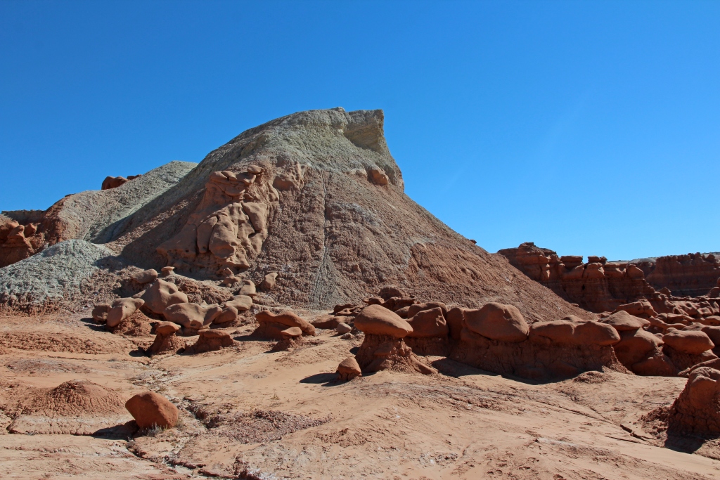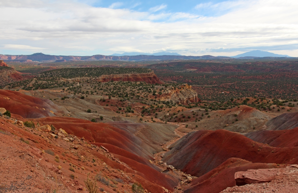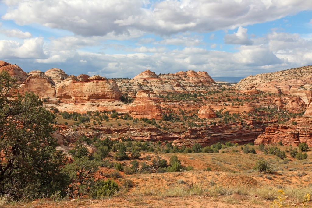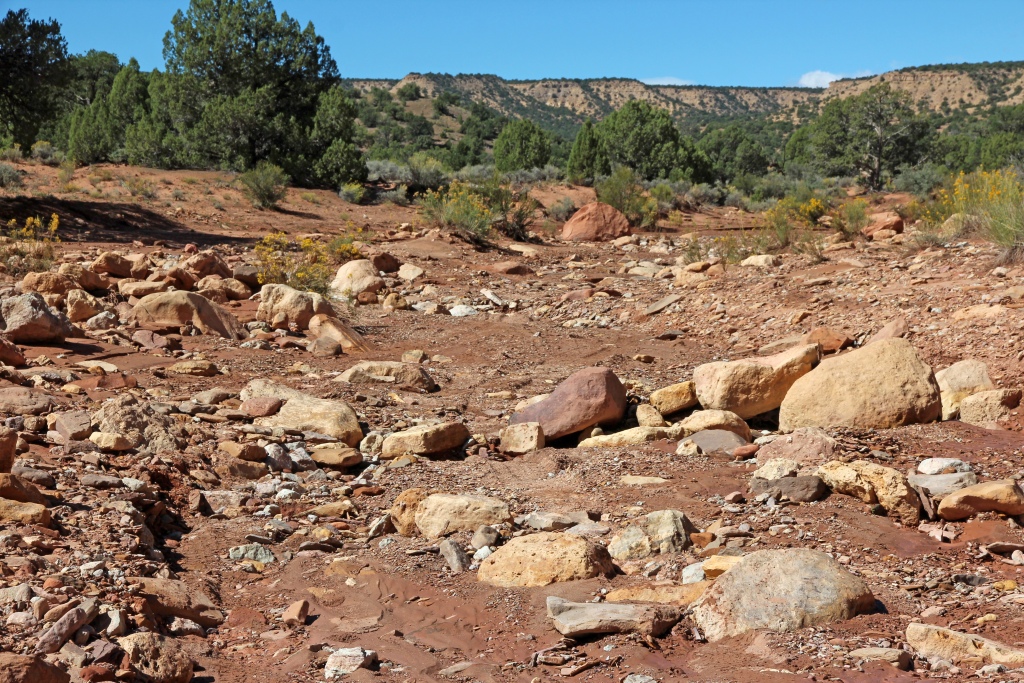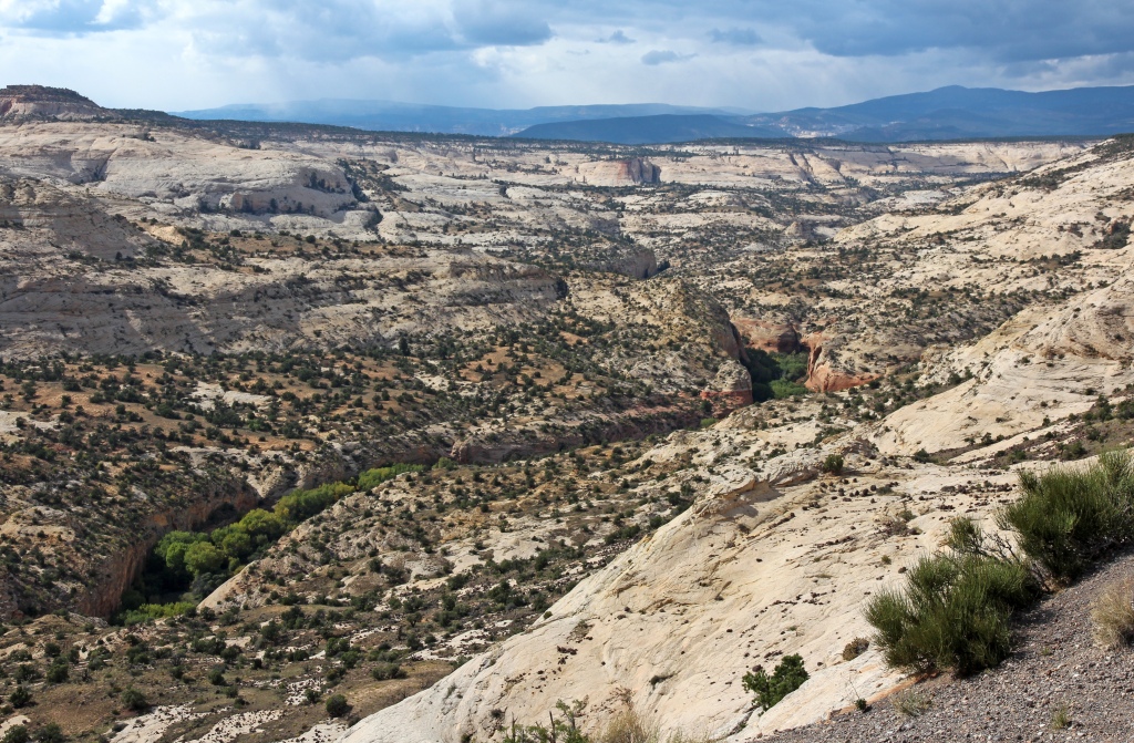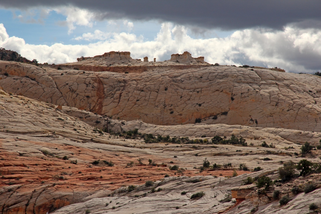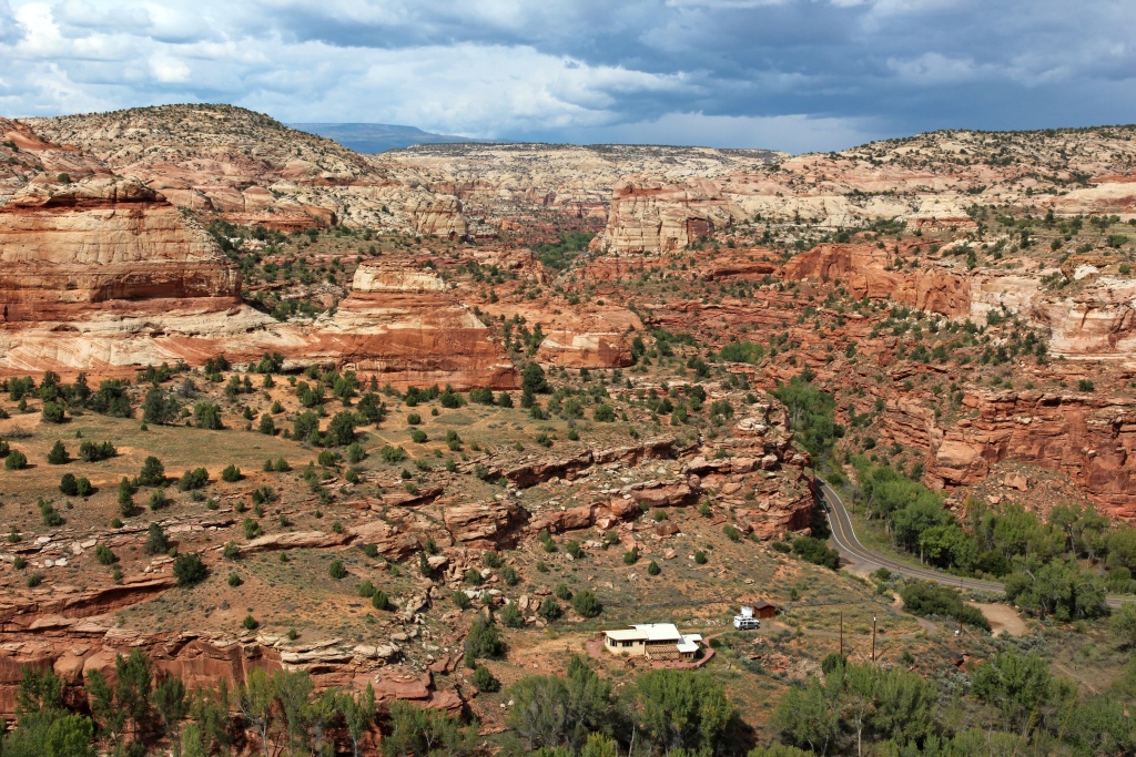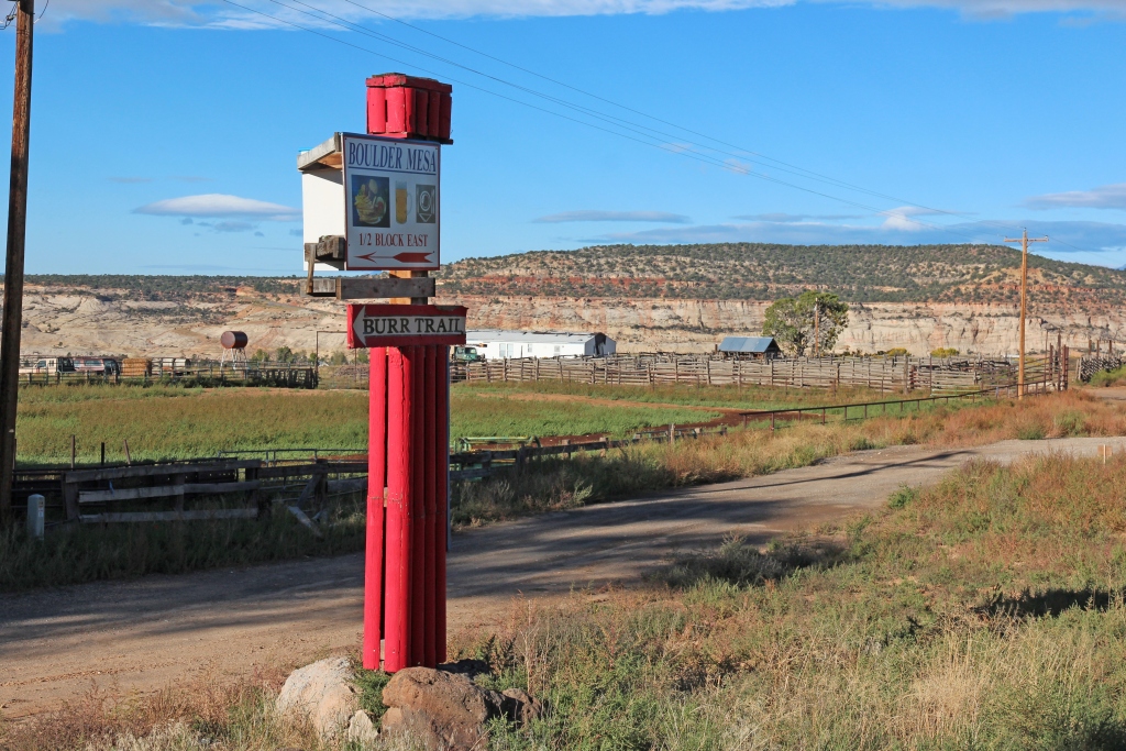 In Escalante erkundigen wir uns im Visitor Center nach den Straßenzuständen. Der Ranger rät von jedweder Gravel Road ab, insbesondere auch von der Spencer Flat Road (Moqui Hill - nicht gar so schlimm, weil wir ja vergleichbare Kügelchen in der White Pocket hatten) und von den Switchbacks am Burr Trail; den oberen Teil des Burr Trail könne man versuchen und je nach aktuellem Zustand weiterfahren.