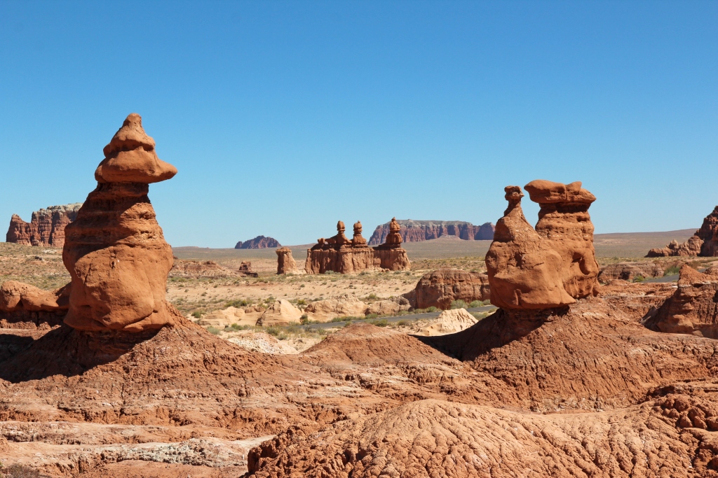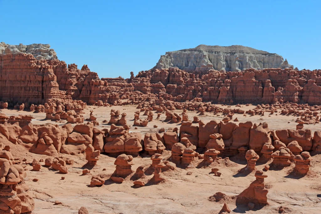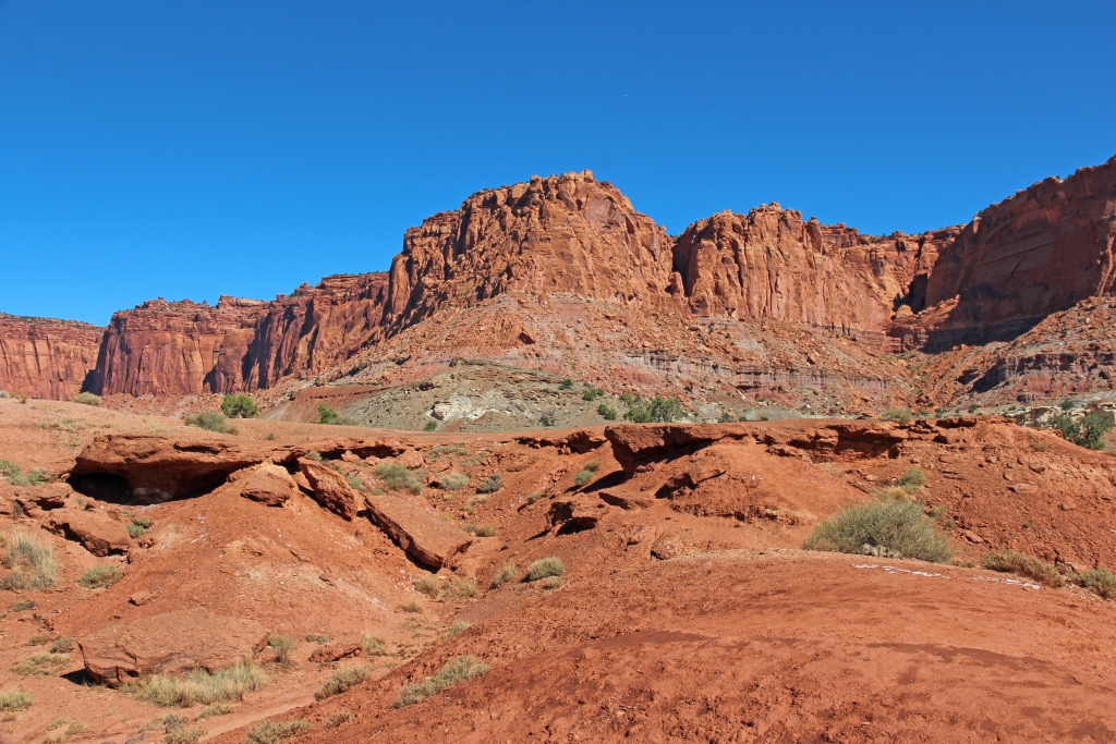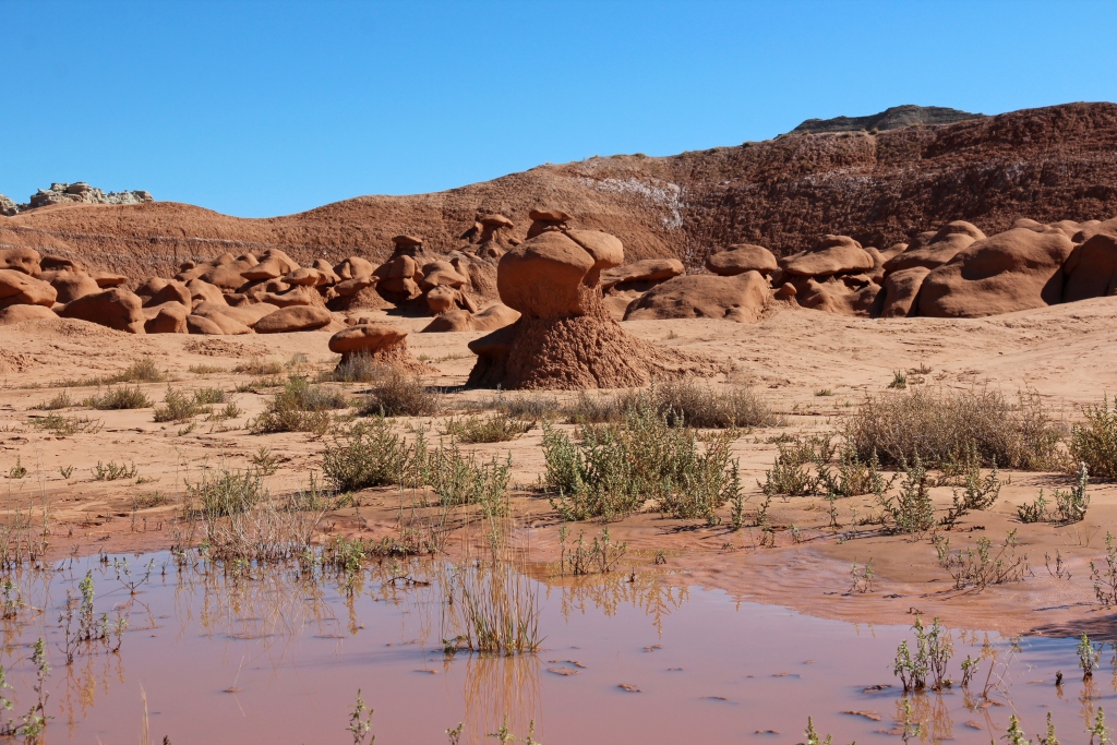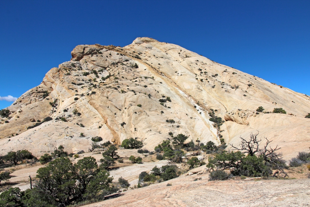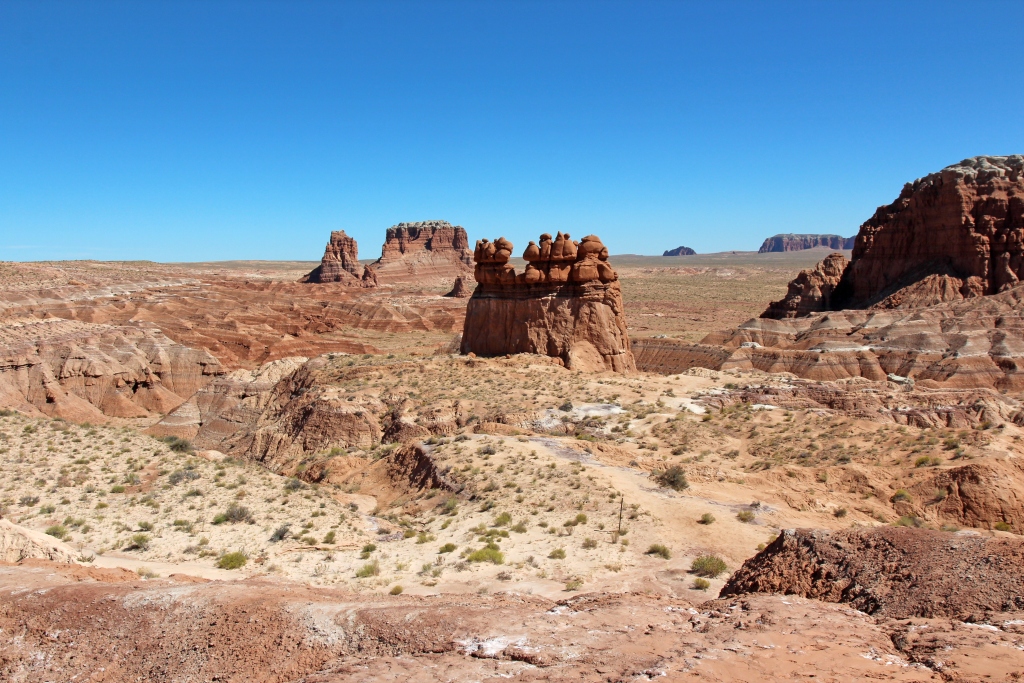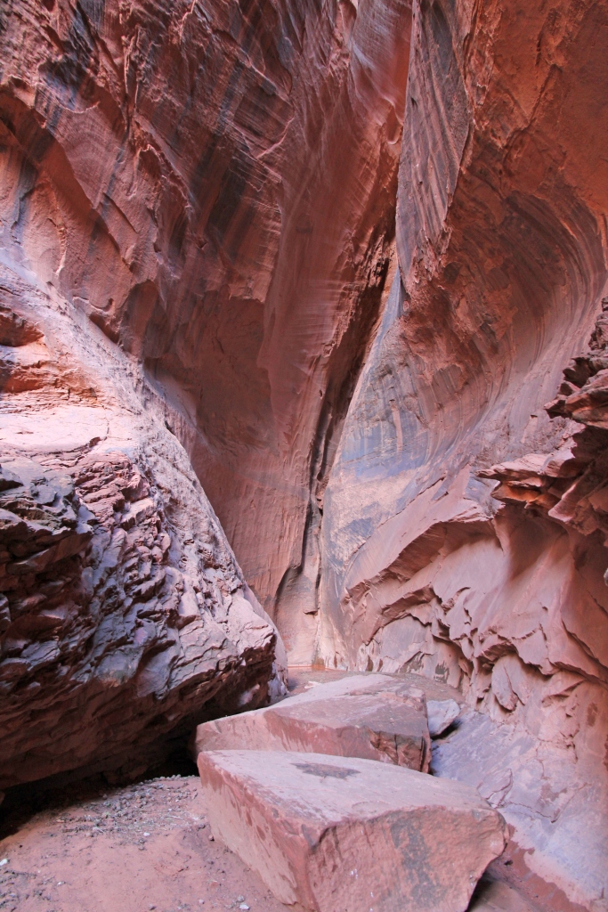 In Escalante erkundigen wir uns im Visitor Center nach den Straßenzuständen. Der Ranger rät von jedweder Gravel Road ab, insbesondere auch von der Spencer Flat Road (Moqui Hill - nicht gar so schlimm, weil wir ja vergleichbare Kügelchen in der White Pocket hatten) und von den Switchbacks am Burr Trail; den oberen Teil des Burr Trail könne man versuchen und je nach aktuellem Zustand weiterfahren.